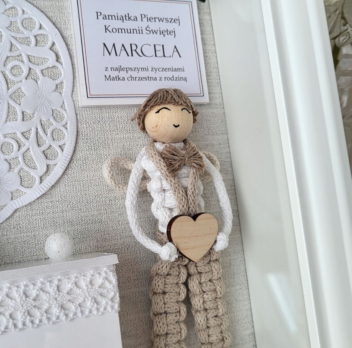 Кадр 3D Причастие Ангел Ангел Макрам Макрам Сувенир первого святого причастия.