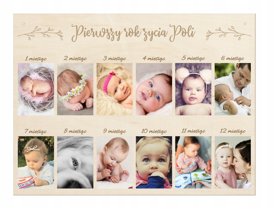 Рамка Доска на 12 фото. Первый год жизни. Годы.