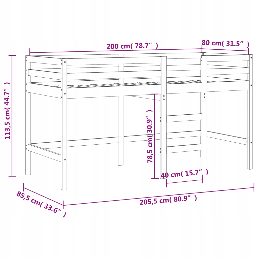 - Высота спящей поверхности над землей: 78,5 см