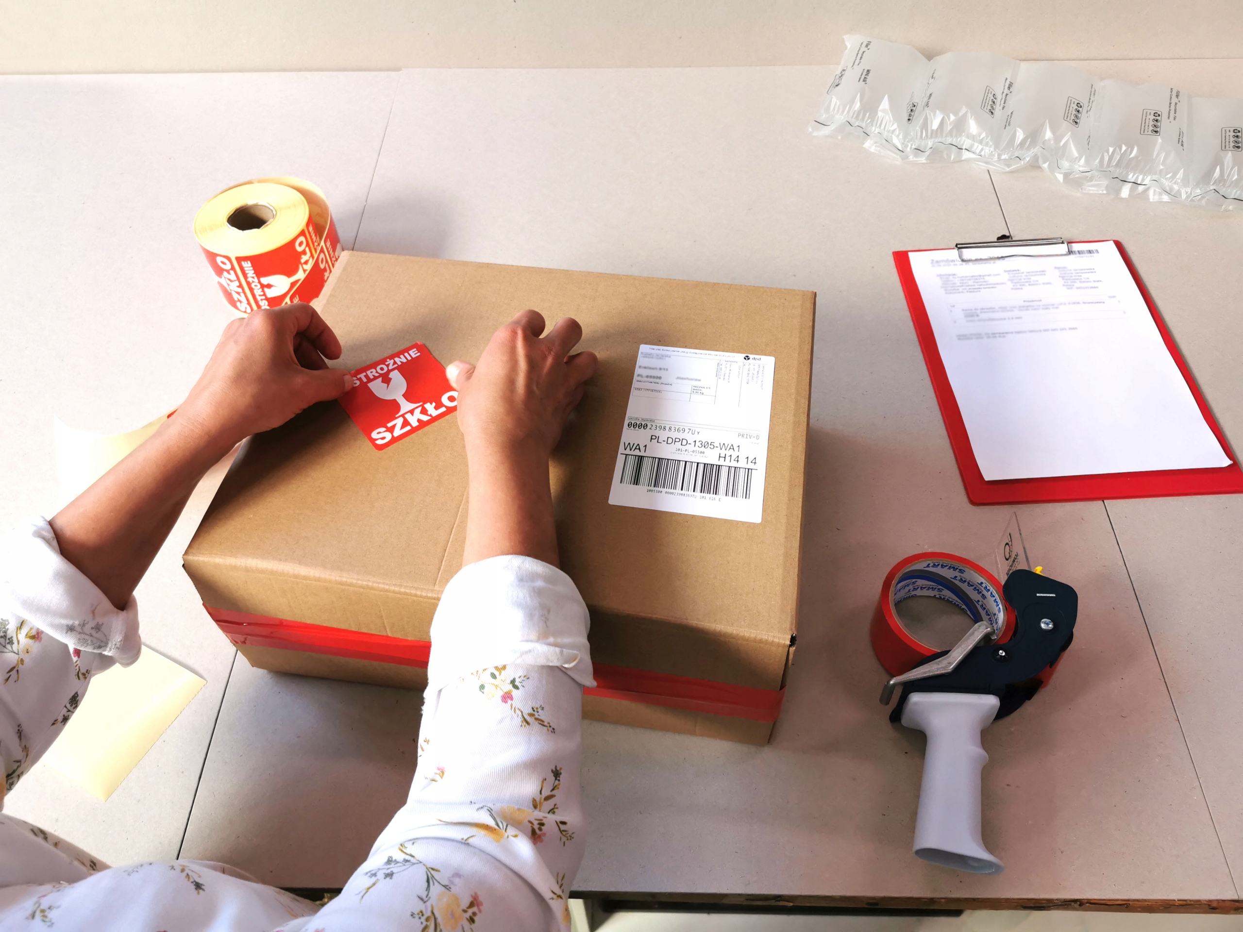 - Все упаковки маркируются этикетками «Осторожно на стекле».