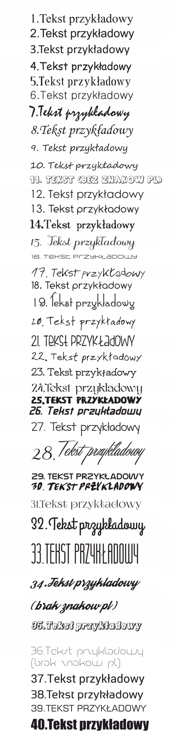 Также добавьте дополнительное пояснение, например логотип должен располагаться рядом с текстом или по бокам рамки и т. д. Дополнительно укажите тип шрифта. Если мы хотим разместить логотип, пришлите его на наш адрес электронной почты. Не забудьте ввести свое имя пользователя Allegro. Печатный текст — наиболее разборчивый шрифт, если хотите другой, пришлите его название или заранее подготовленный дизайн.