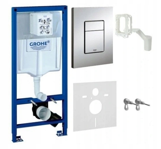состоит из рамы для скрытого монтажа GROHE + кнопки Grohe Skate Cosmopolitan, глянцевый хром + кронштейна Grohe + коврика + адаптера FRESH.