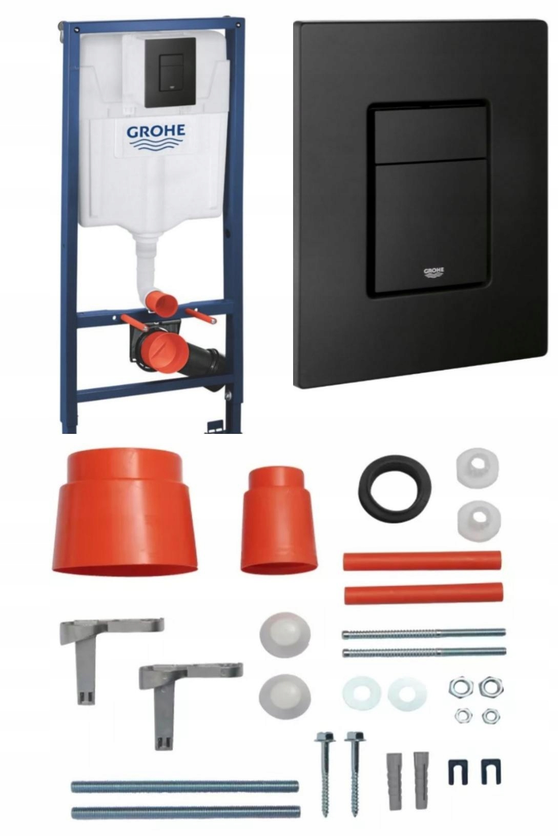 гарнитур для унитаза скрытого монтажа GROHE SOLIDO, каркас с элегантной кнопкой EVEN BUTTON IN BLACK