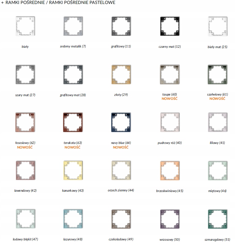 икона скрытая серия - это качество механизмов розеток и переключателей, широкие декоративные функции этой линейки продуктов в основном выполняют кадры, среди которых есть три разные формы на выбор: круглый округлые и квадратные. Bryzgoszzne, двойные розетки, RTV и SAT RTV, телевизионные и антенные розетки, телефоны и компьютерные розетки, мультимедийные розетки, регуляторы освещения, температурные регуляторы, датчики движения, роликовые заплески, универсальные рамки и дополнительные продукты. и переключатели в современной скрытой серии требуют присутствия Кадры, которые играют декоративную роль, и их внешний вид определяет последний эффект, который дает полный продукт, видимый на стене. Универсальные кадры с возможностью горизонтальной и вертикальной системы. Доступные механизмы серии значков совместимы с универсальными кадрами