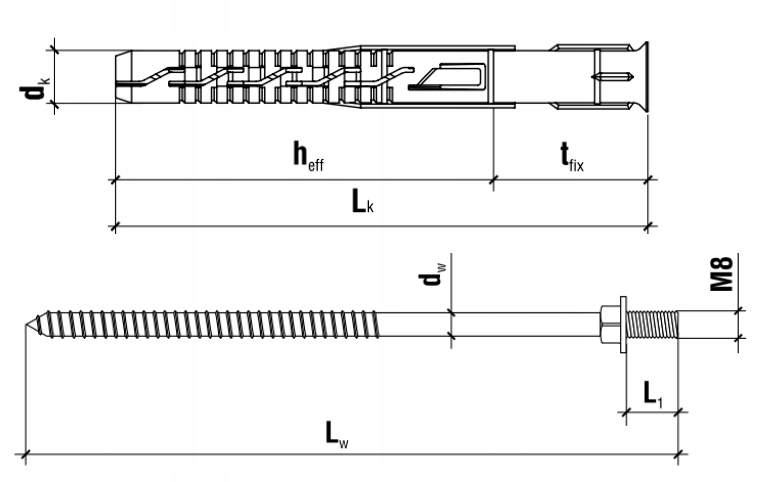 - Диаметр винта [Dw]: Ø 8,0 мм