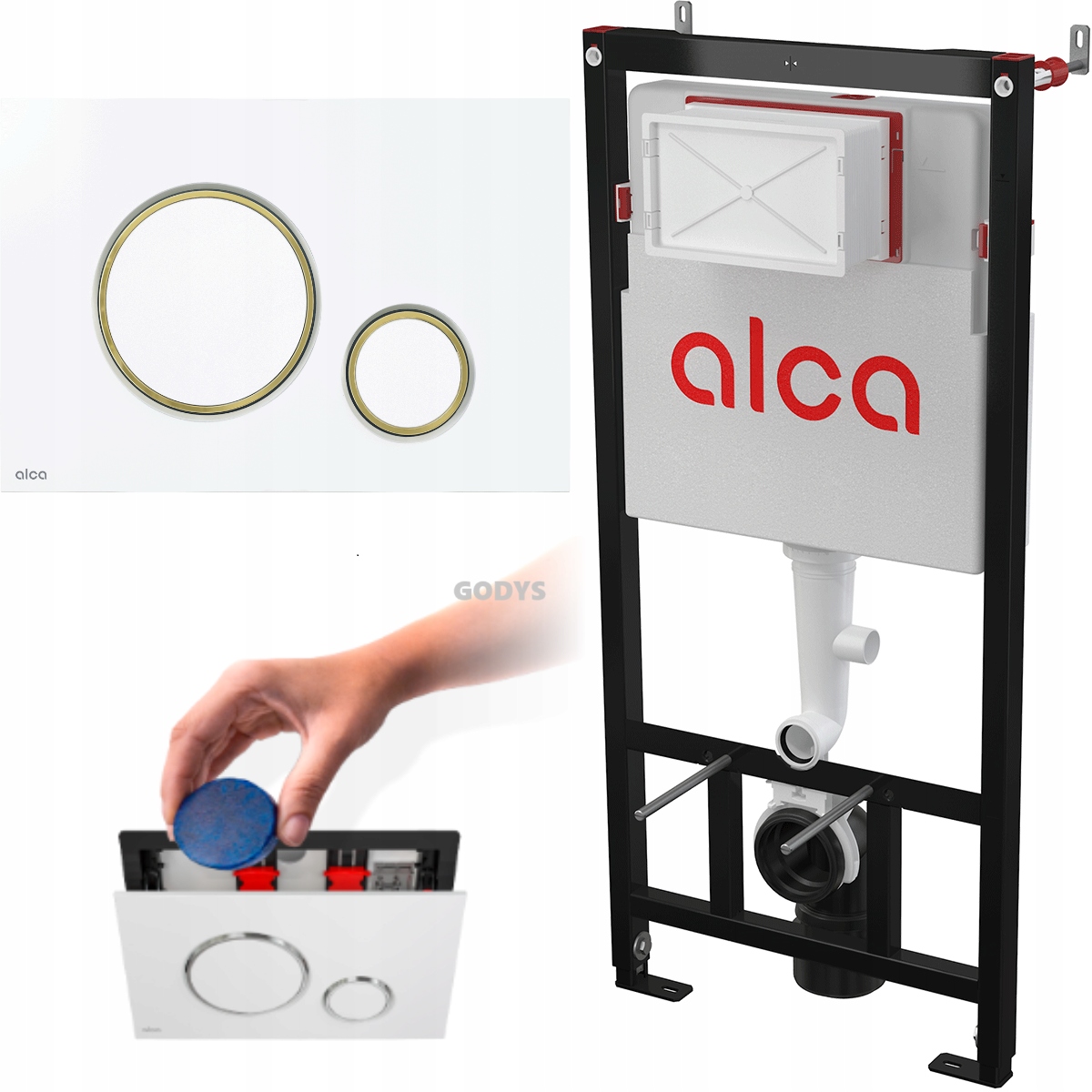 Каркас унитаза скрытого монтажа ALCA в комплекте с кнопкой БЕЛОЕ ЗОЛОТО
