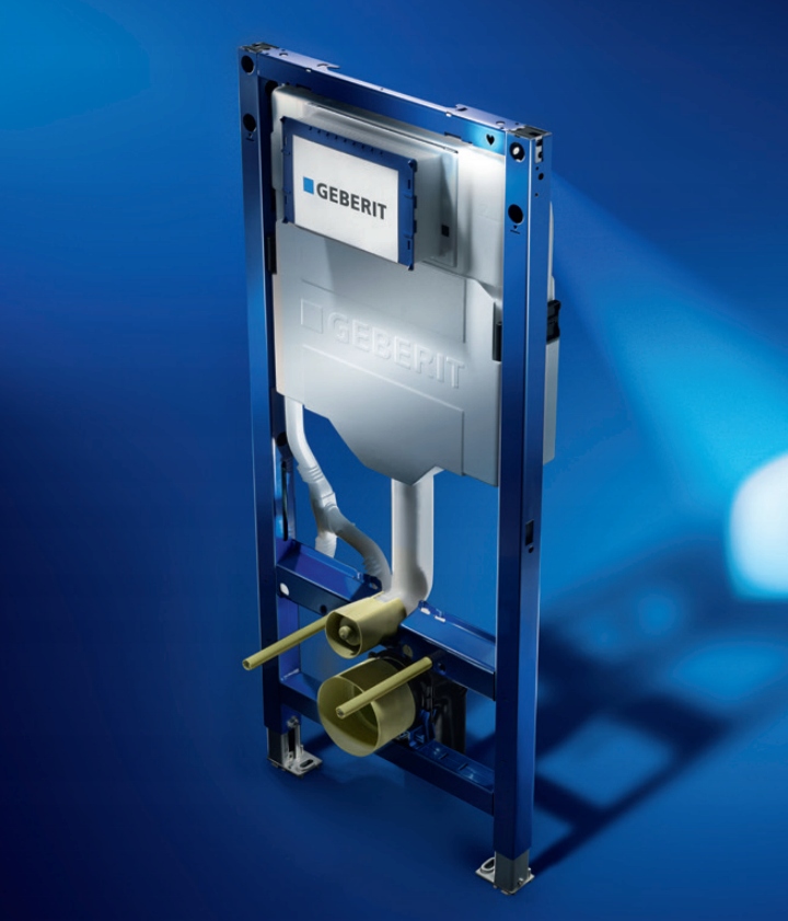 - Скрытый бачок Geberit с рамкой для облегченной конструкции,