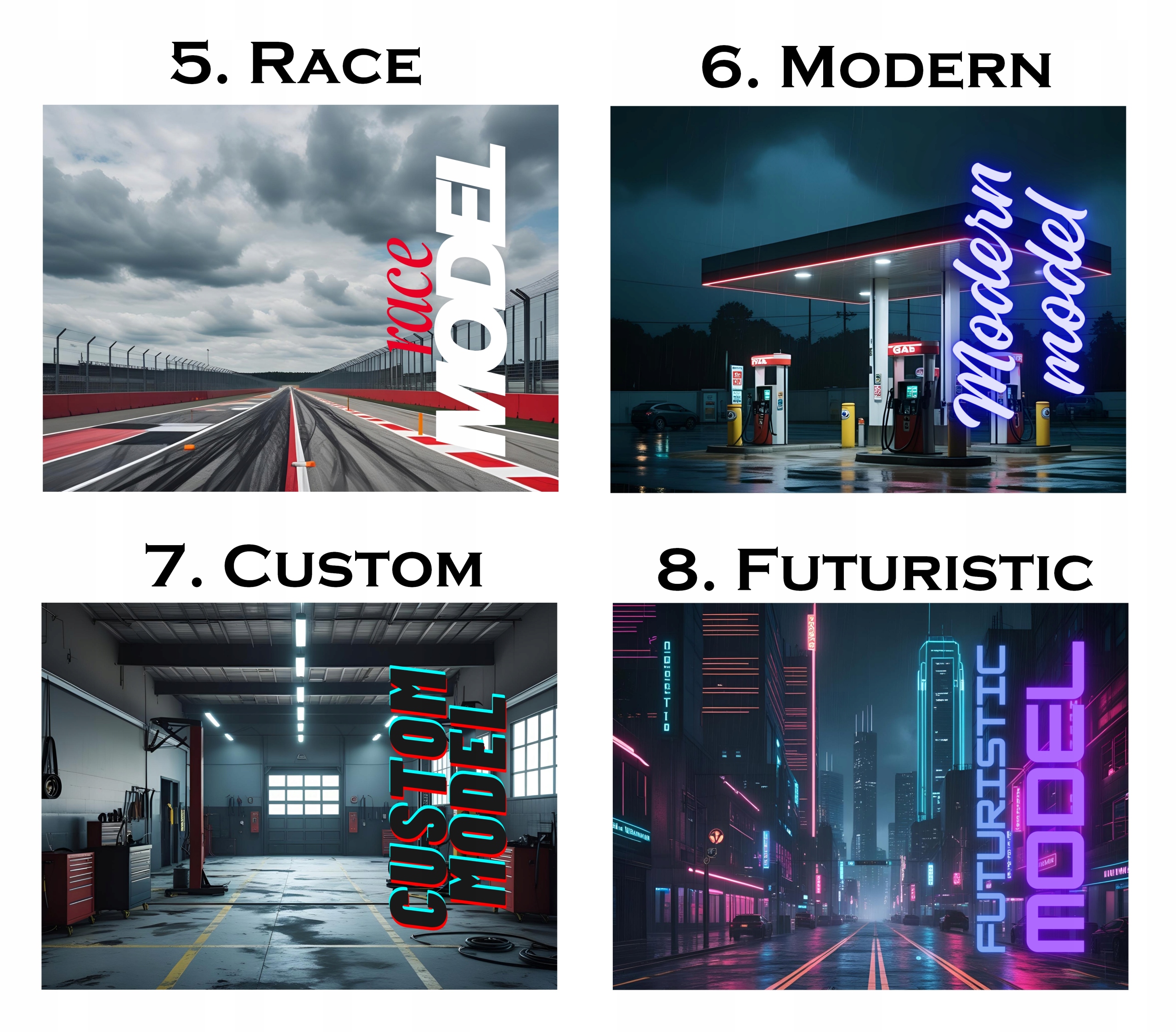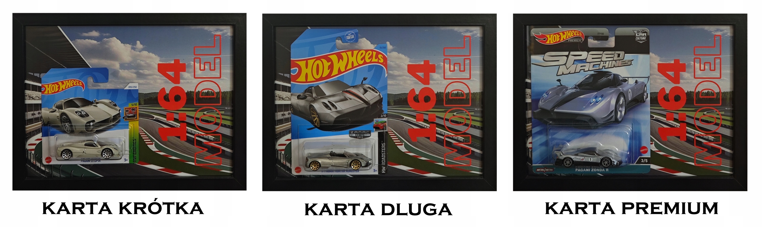 На фотографиях ниже показано, как разные модели HotWheels выглядят в кадре: на коротких, длинных и премиальных картах: