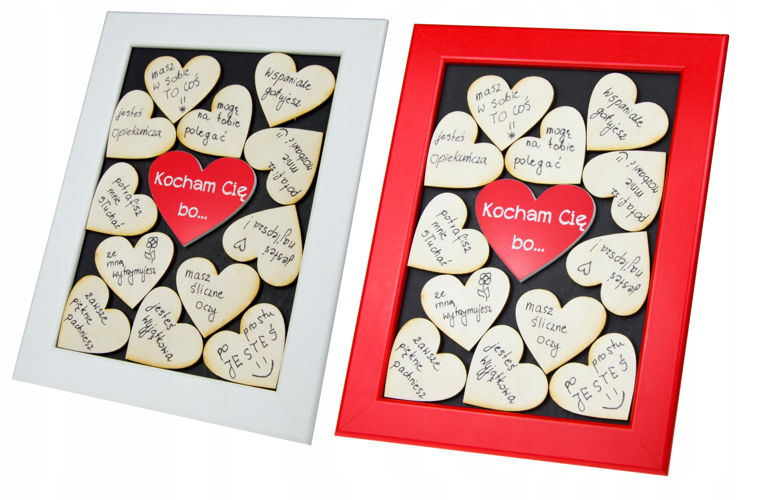 - В комплект входит: рамка с подставкой, 16 деревянных сердечек и 1 красное сердце с гравировкой.