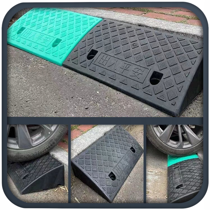 Поверхность резины часто текстурирована или имеет специальные противоскользящие рисунки, что предотвращает скольжение и повышает устойчивость к скольжению. безопасность использования пандуса, особенно в условиях сырости или обледенелых поверхностей.