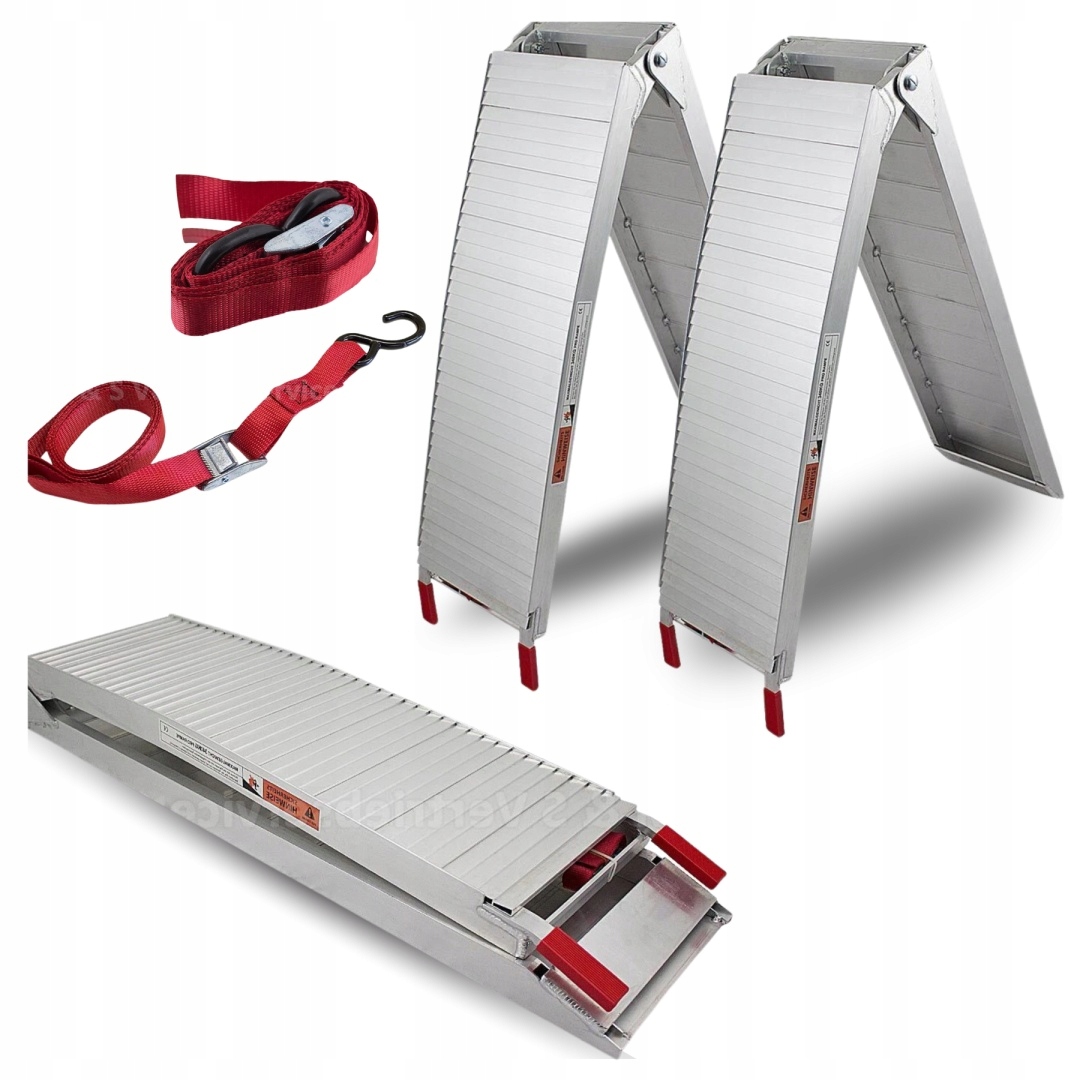 Набор алюминиевых рампов с нагрузкой до 680 кг является идеальным решением! 🏍 Эти вторжения в сборку были разработаны для пользователей, которые ценят комфорт, стабильность и мобильность. Идеально подходит для загрузки мотоциклов, квадроциклов, скутеров, косилок, а также инвалидных колясок или более легких строительных машин. 🏗