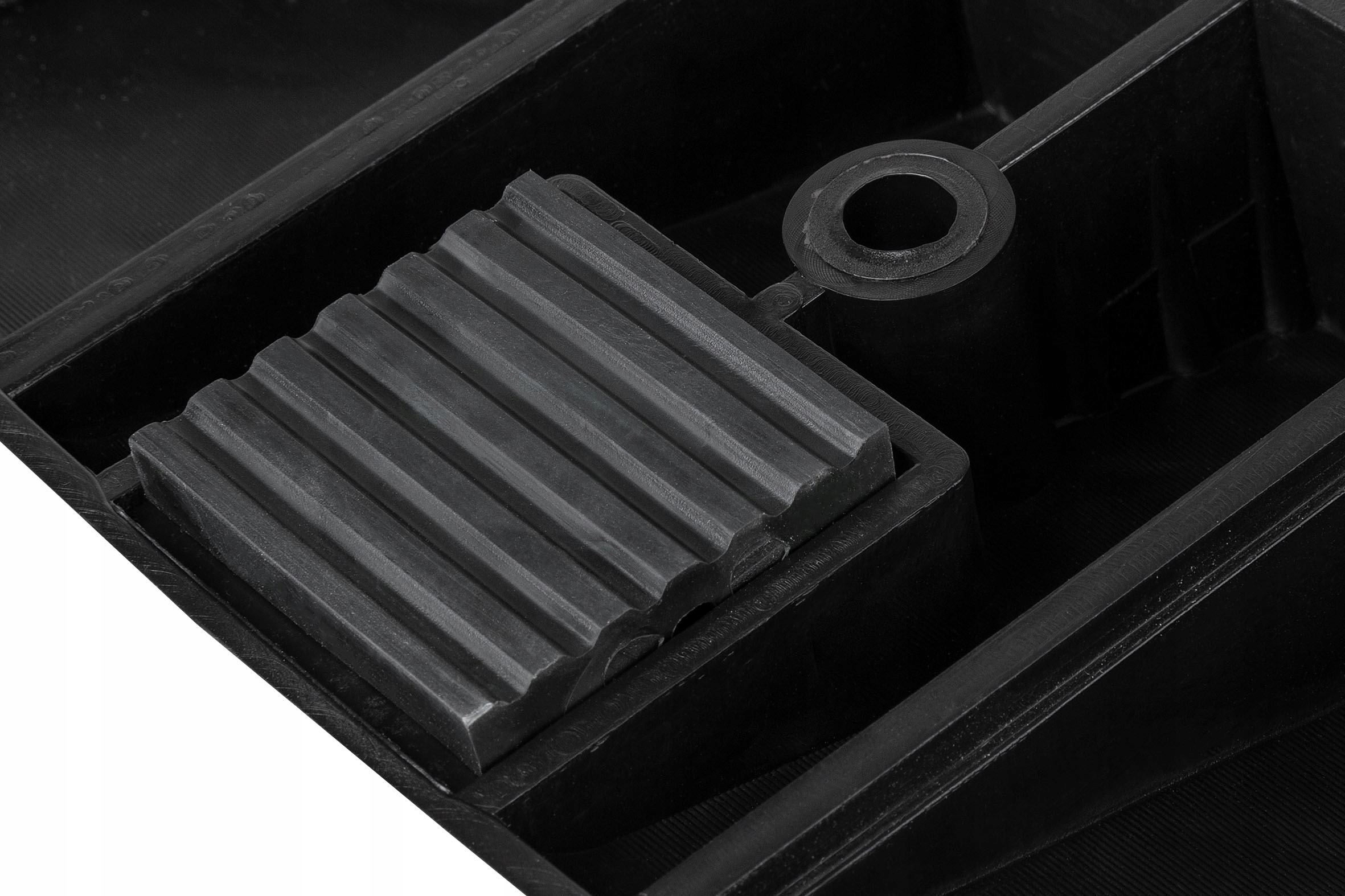➡️ Пазы в материале и высокий порог безопасности – рампы оснащены высоким порогом, защищающим автомобиль от скатывания вперед. Дополнительно весь пандус покрыт специальной конструкцией, увеличивающей сцепление