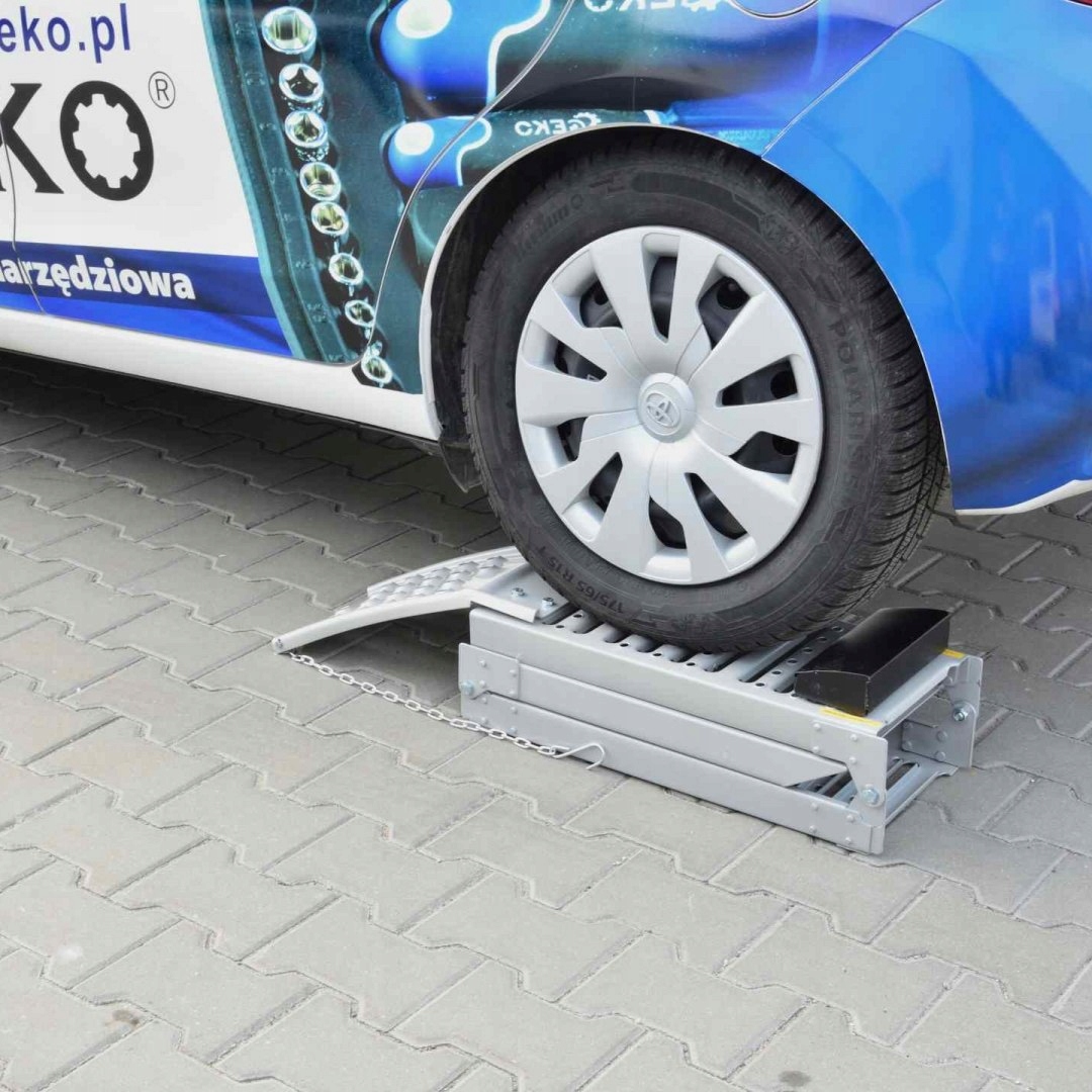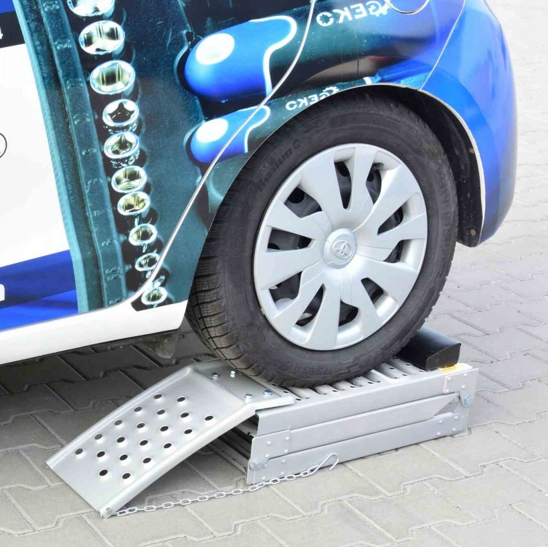 Комплект рампы GEKO включает в себя две складные прочные рампы для автомобилей или мотоциклов с шириной шин до 225 мм.
