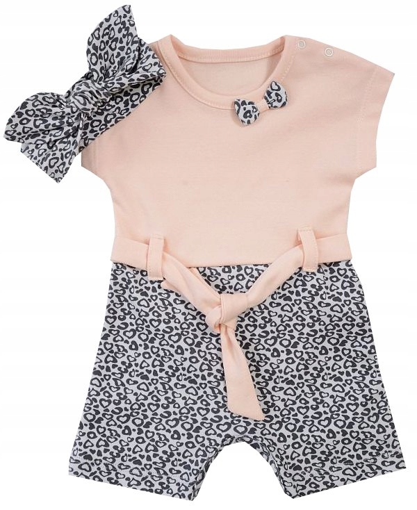 Покрой: бамперы с короткими рукавами, застегиваются на кнопки в промежности и на плече. Тканевый ремень на талии.