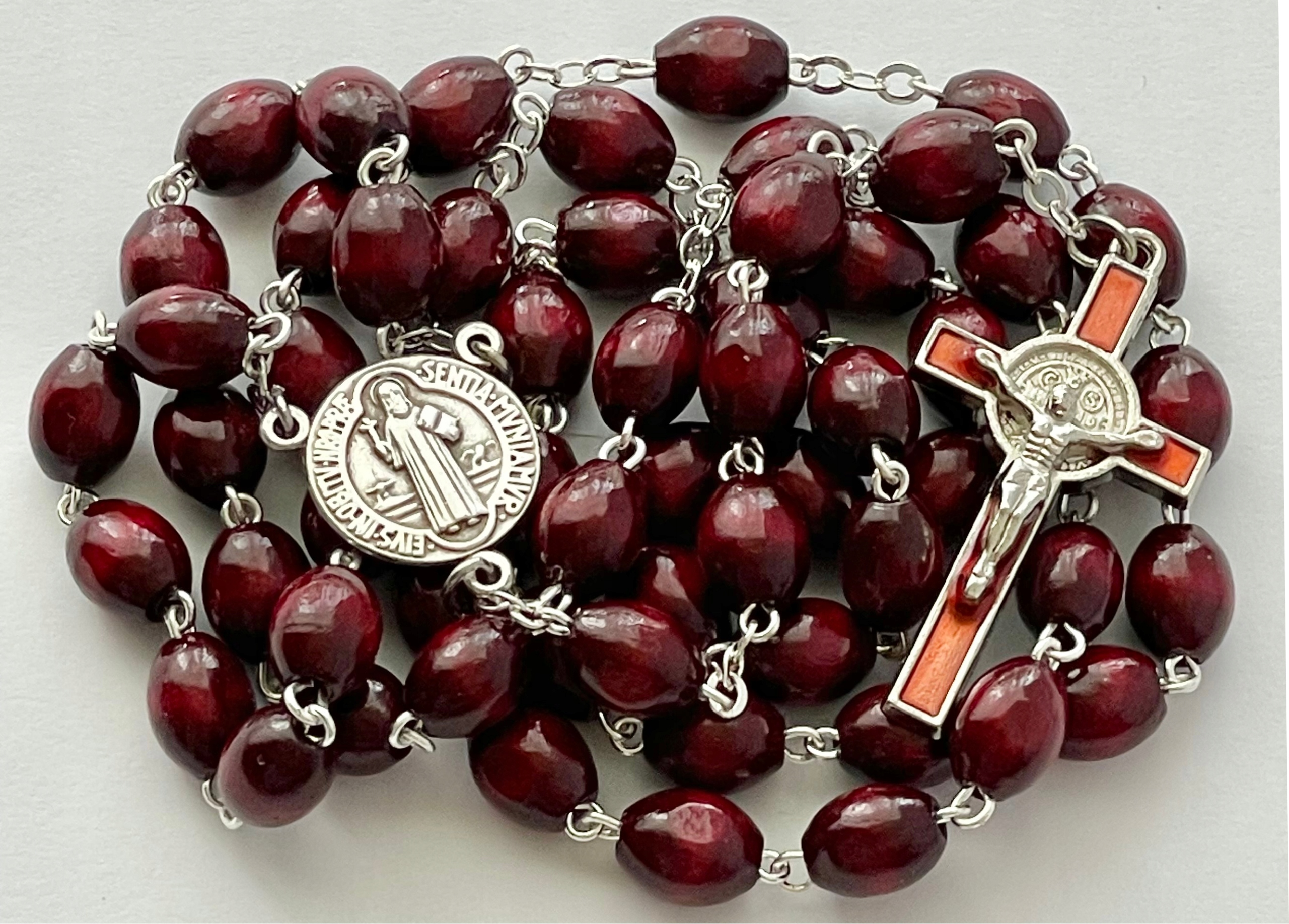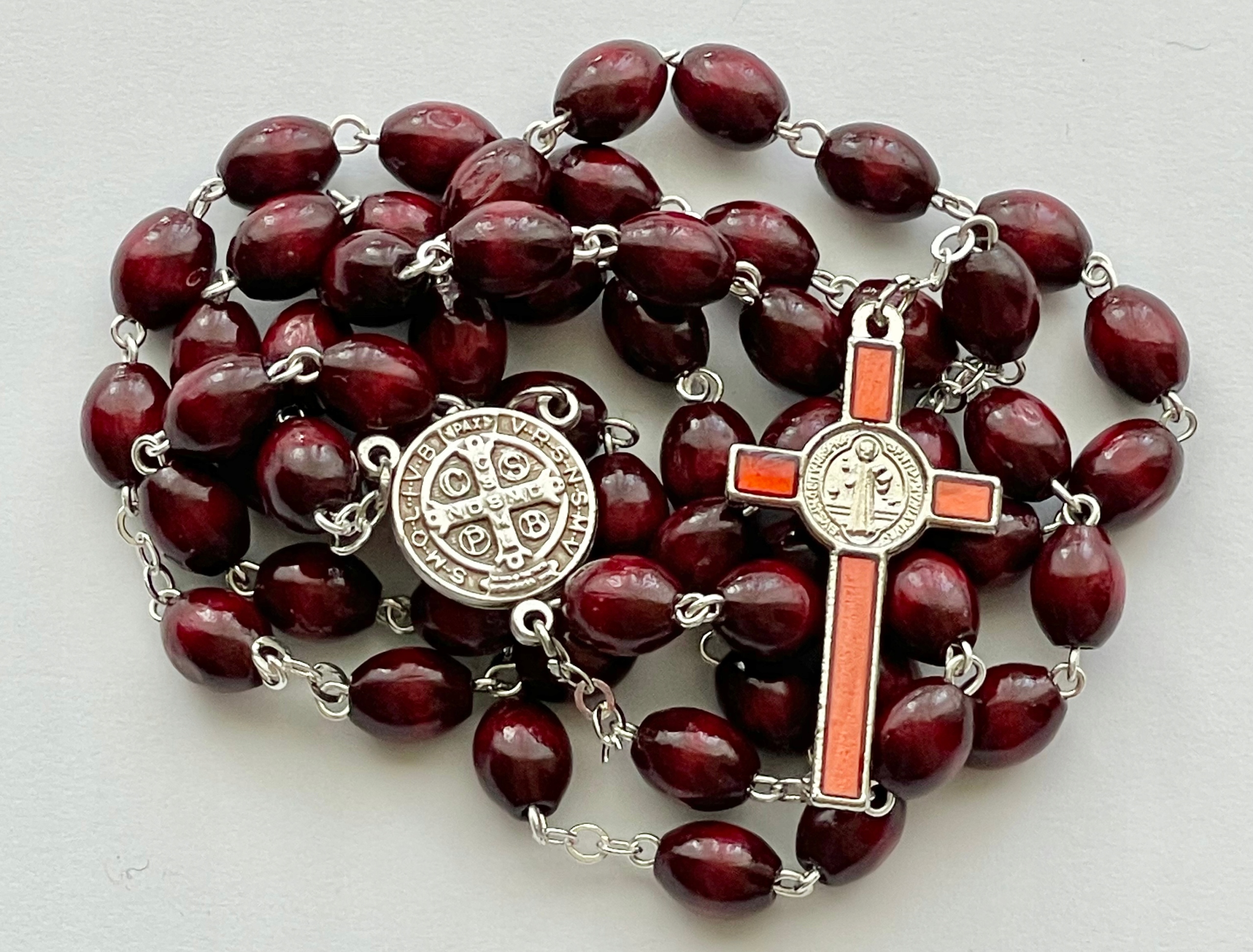 RÓŻANIEC DREWNIANY KRZYŻ ŚWIĘTEGO BENEDYKTA MEDALION ŚWIĘTY BENEDYKT