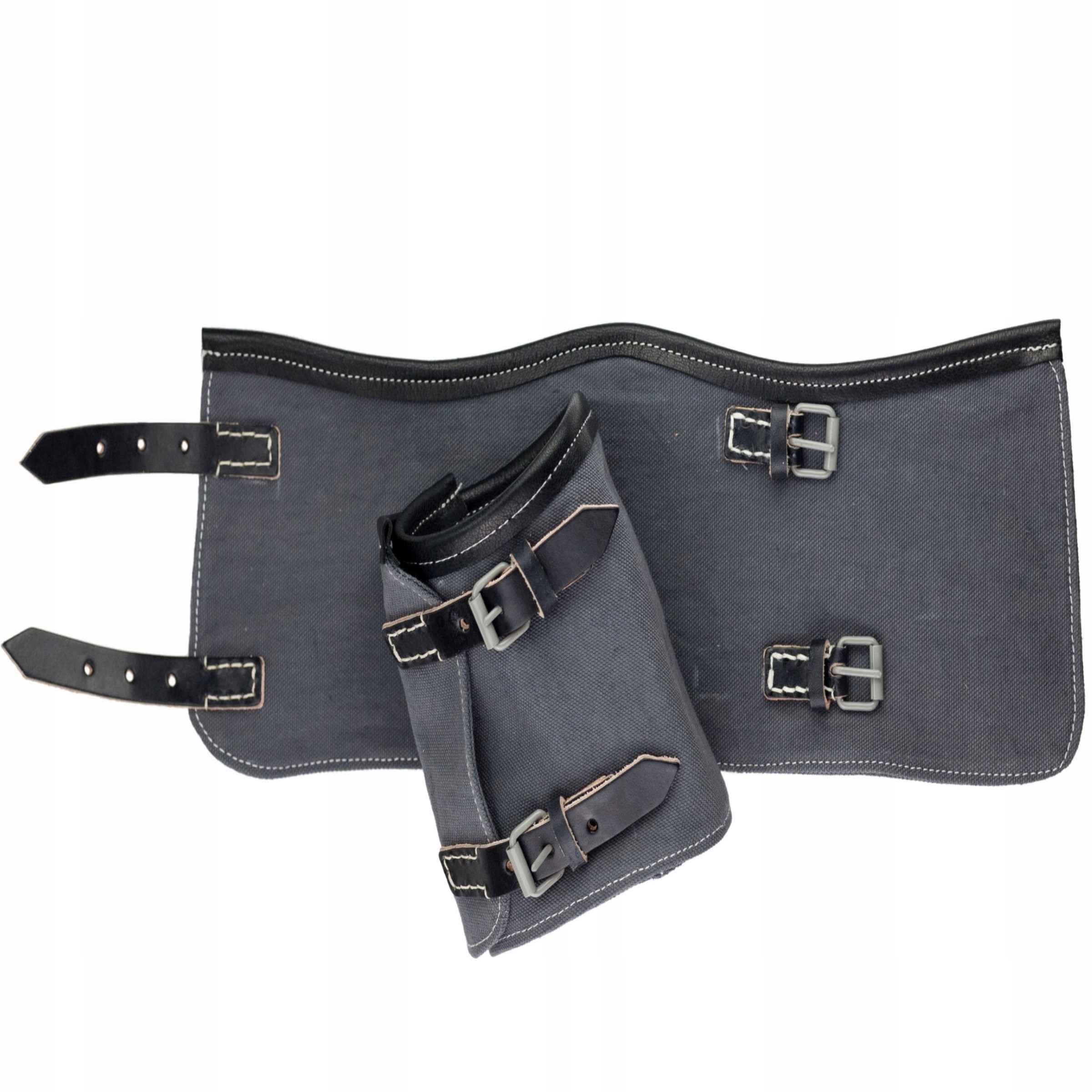 Точная копия немецких колготок начала войны из материала Blaugrau. Пряжки-застежки изготовлены из стали, окрашены распылением в серый цвет, кожаные элементы — из зерненой кожи. Цветные ремешки и кожа, покрывающая края ремешков, черные. Ограничители в версии для солдат Люфтваффе.