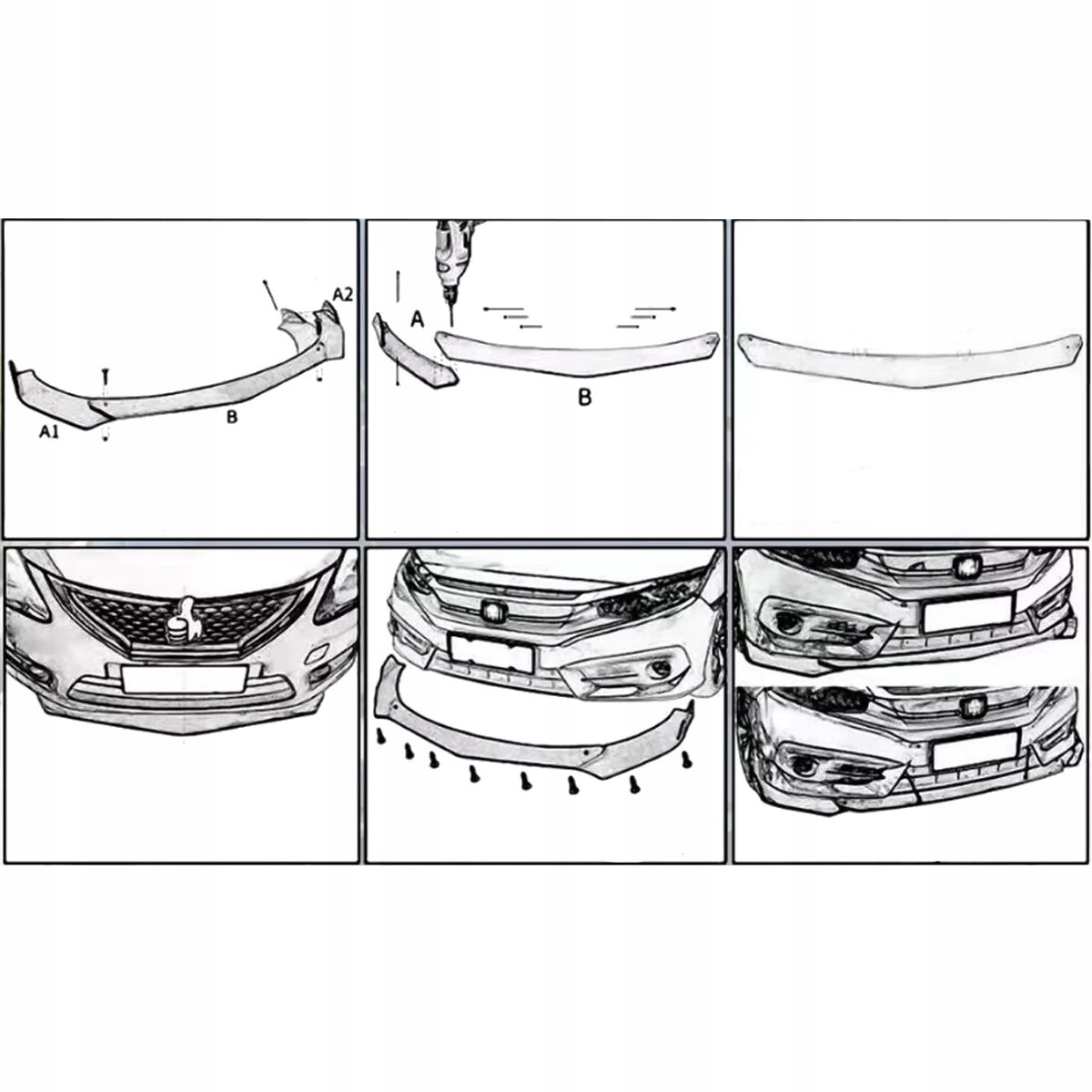 Универсальный спойлер переднего бампера, состоящий из 3 частей.