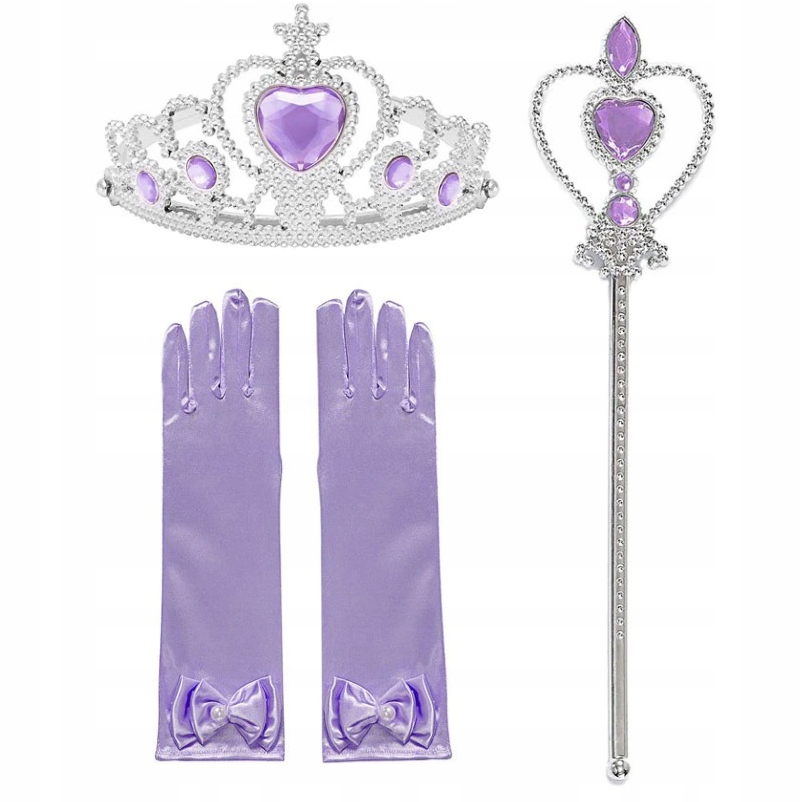 - Фиолетовый лайкровые перчатки, колье с фиолетовыми бусинами и камнем, а также браслет, серьги и кольцо в форме сердечка составляют комплект аксессуаров, благодаря которому каждая девочка почувствует себя настоящей сказочной принцессой. ли>