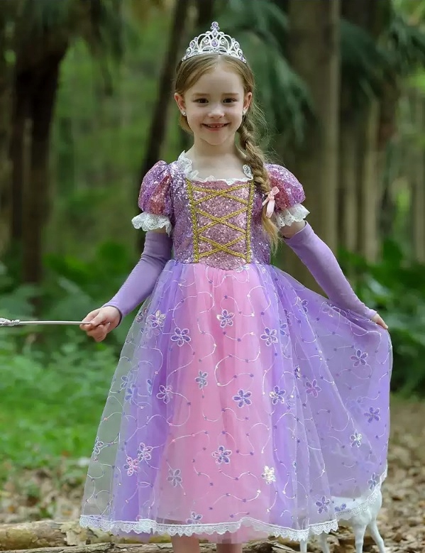 Идеальное платье, наряд для бала, карнавала, дня рождения или для повседневного веселья. Также рекомендуем в подарок маленьким любителям сказки "Рапунцель: Запутанная история" :)