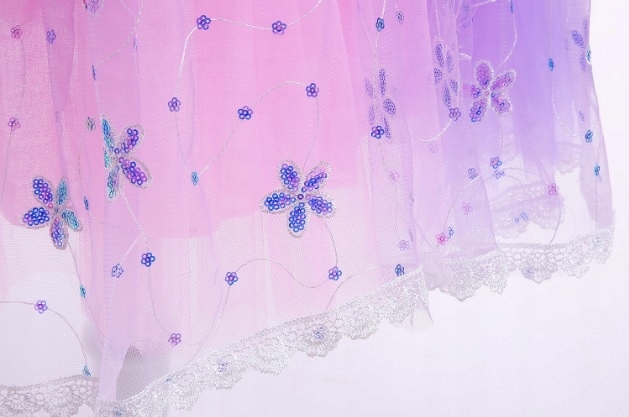 - Платье состоит из подкладки, 2 слоев фиолетового и розового фатина и 1 слоя тюля, дополненного цветами из пайеток, li>