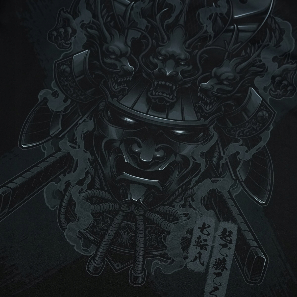 Еще одна часть самурайской серии, на этот раз в теневой версии. Оригинальная графика, приглушенная серая палитра и чистый минимализм здесь делают свое дело. Никаких лишних украшений, только форма и сила сообщения.