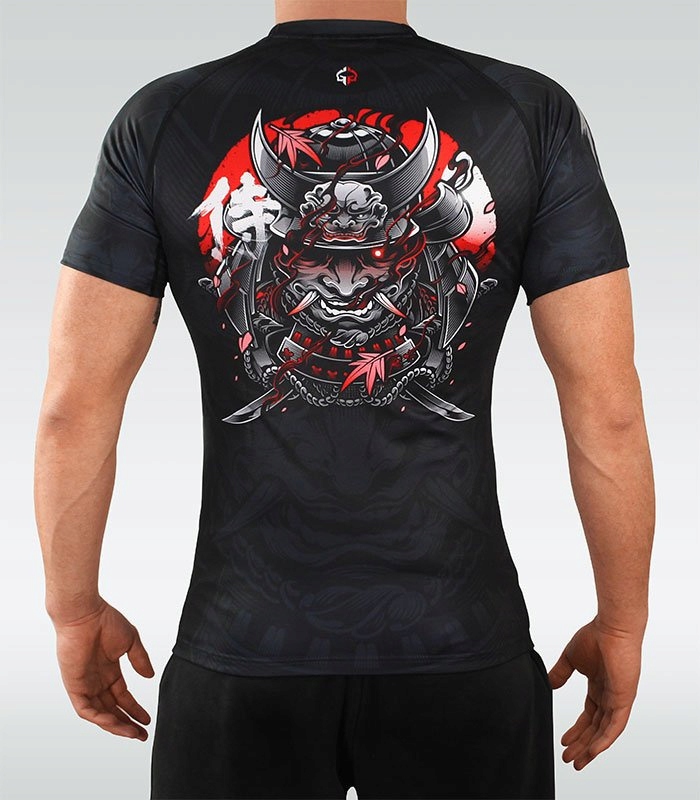 <р> -Специальный крой из раши, который идеально облегает тело и действует как вторая кожа. <р> -Рашгард Samurai хорошо отводит пот и поддерживает оптимальную температуру. <р> -Мы использовали специальную резину внутри рашгарда внизу, которая предотвращает подтягивание рашгарда во время тренировки. <р> -Несмываемый принт с самурайским мотивом, выполненный методом сублимации <р> -Рашгард с короткими рукавами <р> -Классический дизайн с узором японского самураяСостав материала: