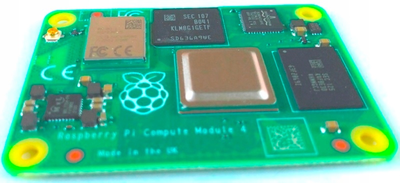 Raspberry Pi Compute Module 4 - микрокомпьютер, оснащенный четырехъядерным процессором Broadcom BCM2711. процессор, ядро Cortex-A72 (такое же, как в Raspberry Pi 4), работающее на частоте 1,5 ГГц и графический чип Broadcom VideoCore VI. В микрокомпьютере CM4 объем оперативной памяти может варьироваться от 1 до 8 ГБ. В зависимости от версии модуль может быть оснащен памятью eMMC емкостью от 8 ГБ до 32 ГБ и может иметь встроенную сетевую карту Wi-Fi (IEEE 802.11b/g/n/ac 2,4/5 ГГц) и Bluetooth. Модуль 5.0/BLE. Вычислительные модули CM4 предназначены в основном для промышленного применения и не оснащены разъемами USB, HDMI и т.п.