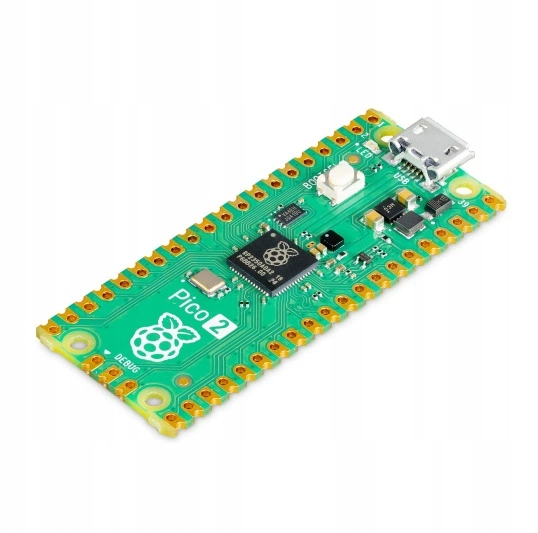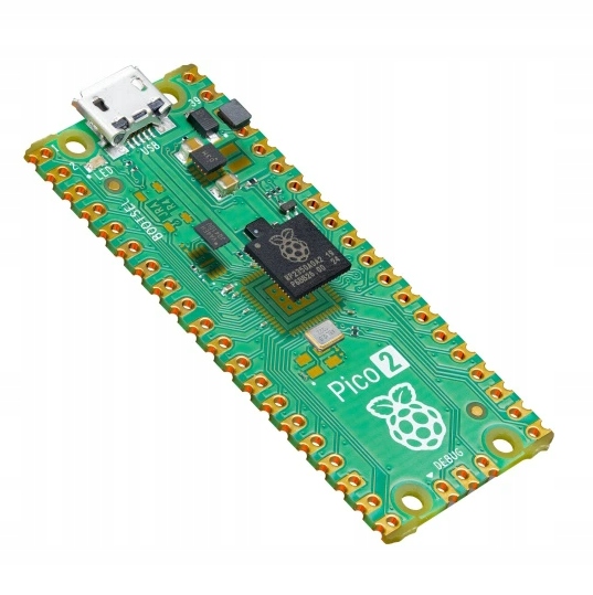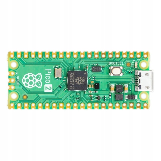 Raspberry Pi Pico 2 — достойный преемник популярной платы Raspberry Pico. От своего предшественника он отличается главным образом используемым микроконтроллером. На смену двухъядерному RP2040 пришел четырехъядерный RP2350. Два из них — Arm Cortex-M33 (имеют встроенный сопроцессор для вычислений с плавающей запятой), два других — RISC-V Hazard3. Итак четырехъядерник... Не совсем - плата может использовать только два выбранных ядра и какое из них нам предстоит решить в самом начале. Интересно, что это могут быть ядра разных типов. Дополнительными преимуществами платы являются увеличенный объем памяти: 520 КБ SRAM и 4 МБ QSPI Flash-памяти, а также увеличенная тактовая частота до 150 МГц. По данным независимых тестов, новая плата примерно в два раза быстрее предыдущей, при этом энергопотребление снижено. Есть ли у модуля недостатки? Что ж, видимо, в Raspberry PI Foundation испугались, что их новый продукт слишком хорош и что в следующей версии будет слишком мало вещей, которые можно было бы улучшить, и они использовали слегка устаревший разъем microUSB вместо USB-C. Такой маленький минус. Если вдуматься, это особенность большинства продуктов с малиной.