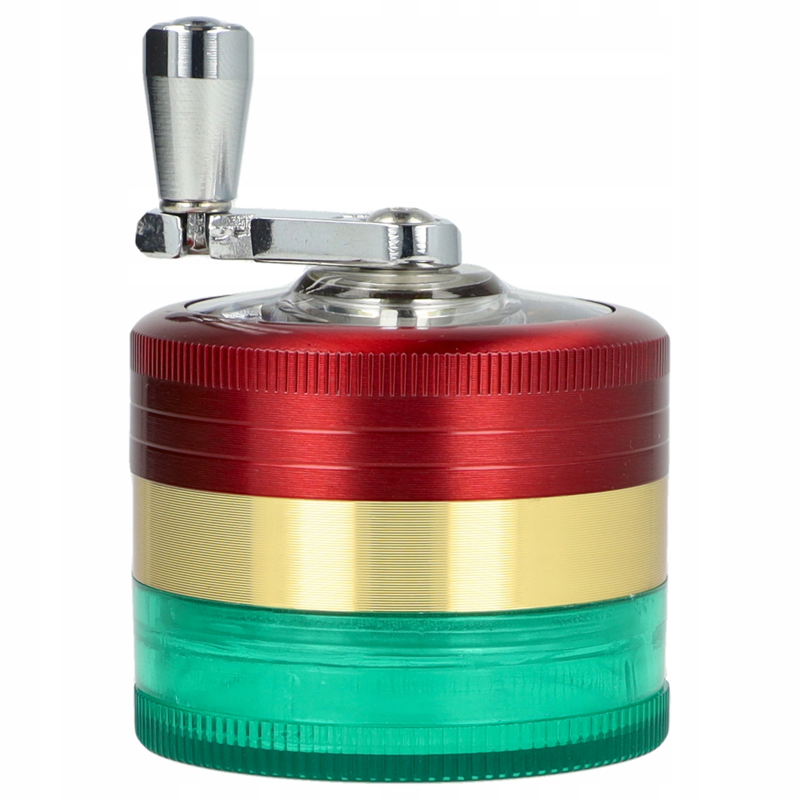 Маленький, удобный раст, изготовлен из акрила, Краззер также прикреплен к обливанию пыльцы. Верхняя крышка имеет кривошип, который облегчает измельчение более сушеного одновременно. Благодаря своему размеру, шлифовальный меторолик отлично держится в руках и очень легкая благодаря материалам, из которых она сделана.