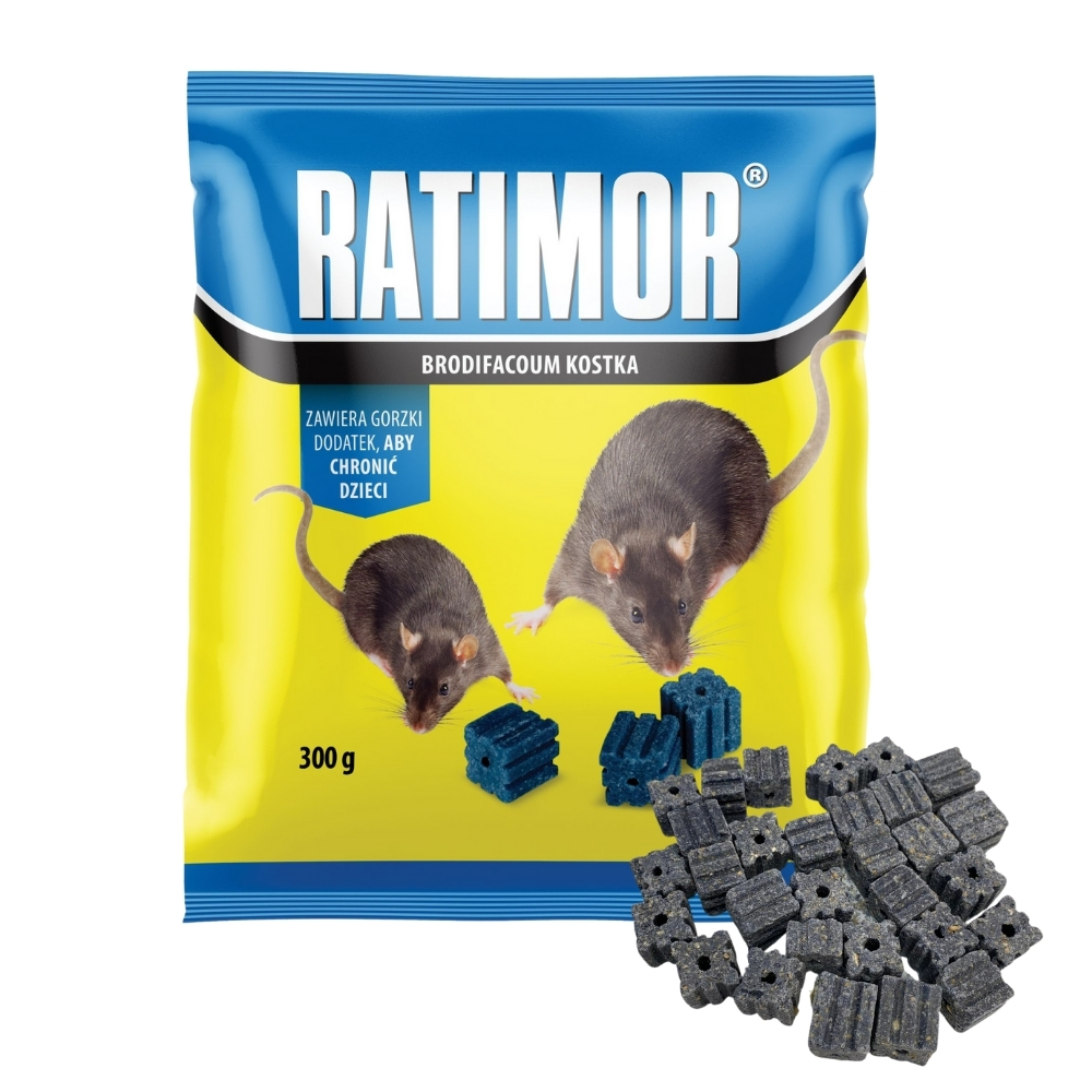 Ратимор Бродифакум Это профессиональное средство, предназначенное для борьбы с мышами и крысами. Кубик воска массой 20 г содержит активное вещество бродифакум, действующее после однократного приема грызуном. Продукт отличается высокой эффективностью, длительным действием и удобной, готовой к употреблению формой.