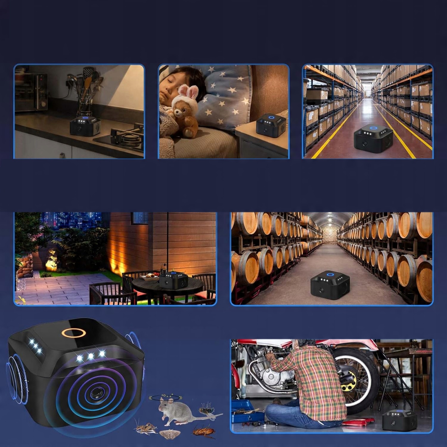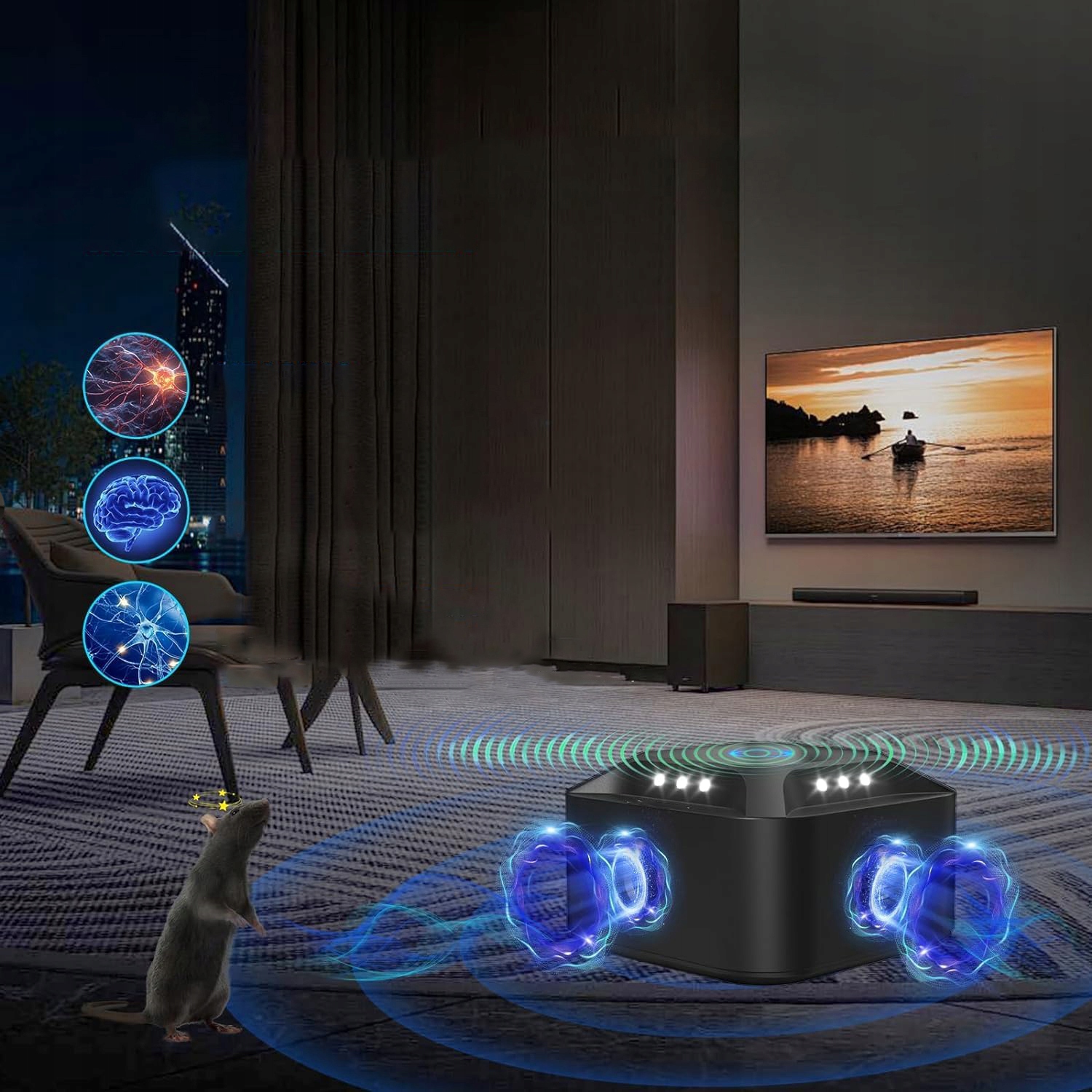 Мышиный репеллер с ультразвуковыми и электромагнитными волнами, которые стимулируют нервную систему и слуховую систему грызунов, благодаря тому, что они чувствуют себя некомфортно и убегают от места преступления. Кроме того, они также напуганы ночью независимыми контролируемыми стробоскопными огнями. Просто подключите устройство, которое работает весь день, и охраняет дом 24/7