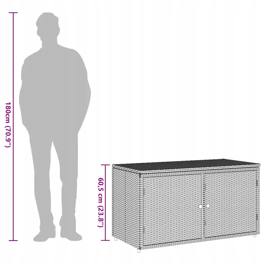 Этот садовый шкаф идеально подходит для хранения подушек для садовой мебели, садовых аксессуаров, полотенец для бассейна и других предметов в упорядоченном и легкодоступном способе. Прочный и прост в поддержании пластика, который выглядит как естественный ротан. Он легкий, прост в чистке и широко используется для производства продуктов, предназначенных для внешнего использования, из -за его долговечности и устойчивости к атмосферным факторам.