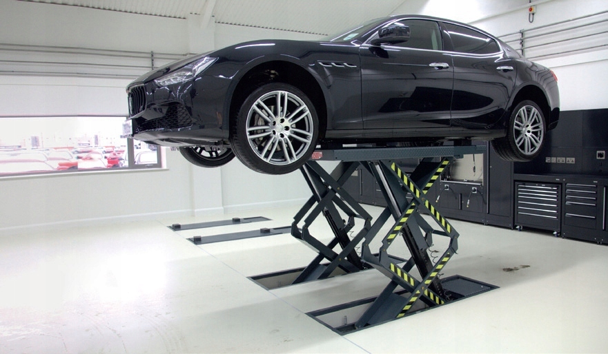 Высокий подъемный (ремонт) Раваглиоли - RAV510I, выделяющий лифт, оборудованный плоскими удлиненными платформами, предназначенные для обработки транспортных средств до 3500 кг, идеально подходит для семинаров с небольшим пространством и для транспортных средств с низким и уменьшенным подвеской, в частности, с уменьшенными спойлерами. Рекомендуется для транспортных средств с регулируемой высотой подвески или ее повреждением. Предназначен для установки на полу. Иллюстративные фотографии. Стандартные цвета раваглиоли серый / синий.