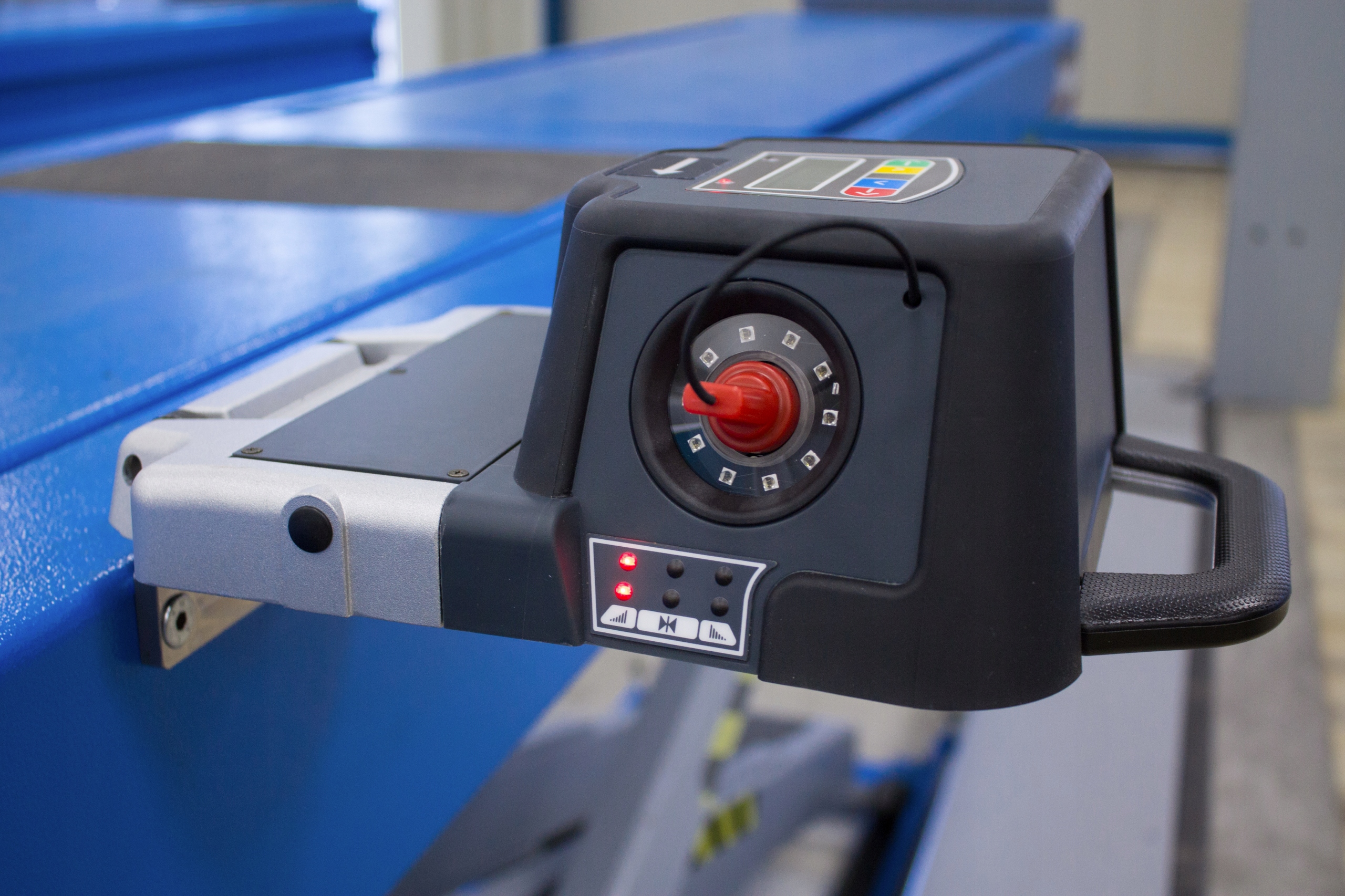 Устройство для проверки сход-развала, 3D-технология с настенной панелью, передача данных через Bluetooth, управление с 10-дюймового планшета, с держателем для 3- или 4-точечных зажимов, с практичными подвесками, зарядными станциями для 3D-измерительных головок с магнитным держателем батареи.