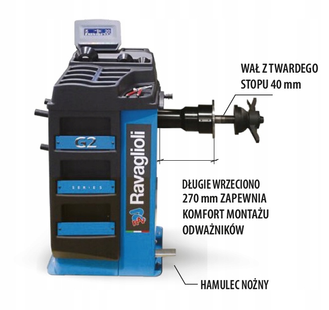 Устройство имеет ЖК-экран и колёсики. Балансир принадлежит к новой линейке моделей RAVAGLIOLI. Автоматический запуск при закрытии крышки. Автоматическая остановка в верхней точке дисбаланса.
