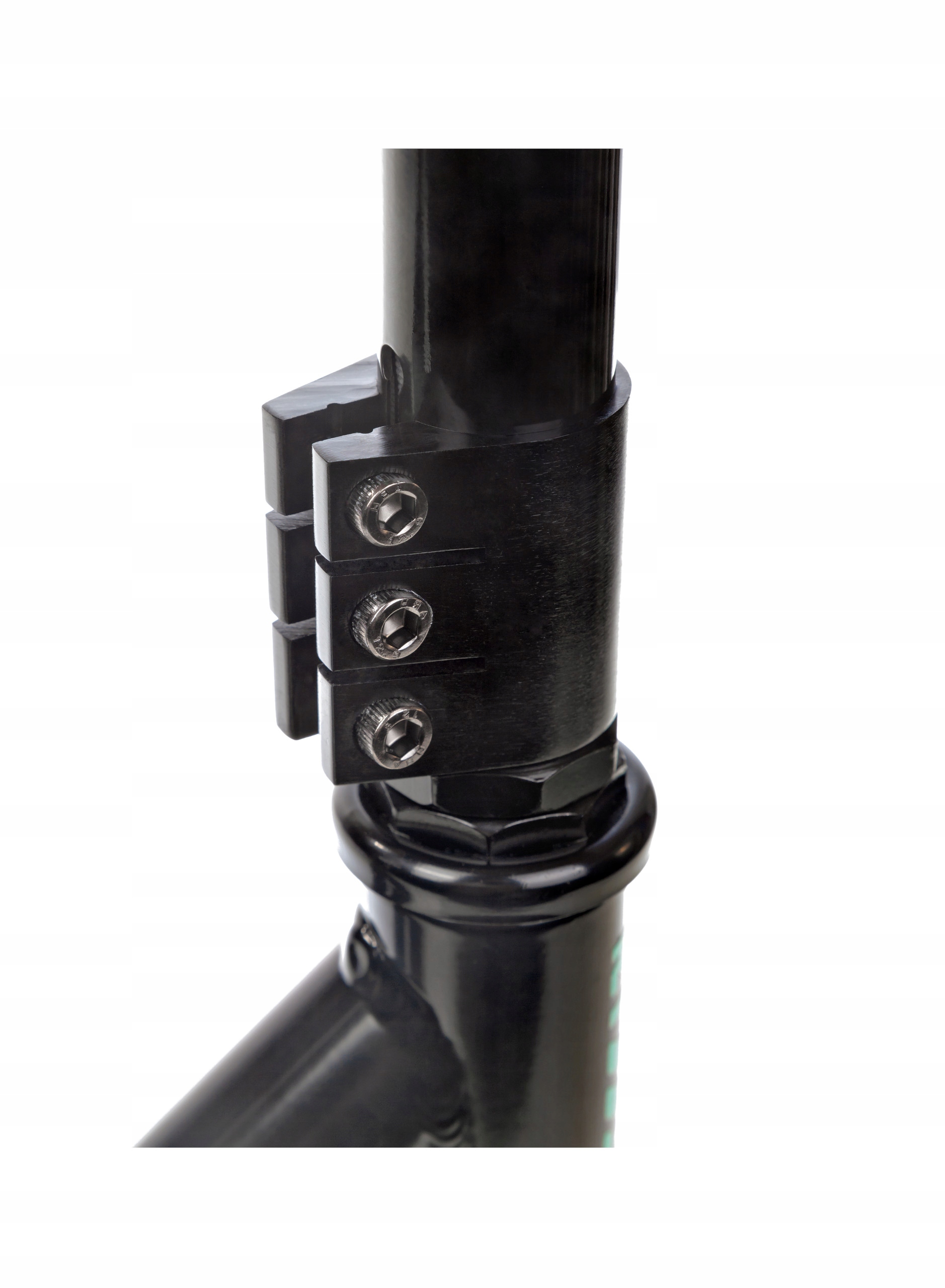 Соединение руля с вилкой самоката также является важным вопросом. Именно поэтому на нашем скутере серии RAVEN Evolution установлен прочный алюминиевый зажим, закрепленный тремя крепежными винтами.