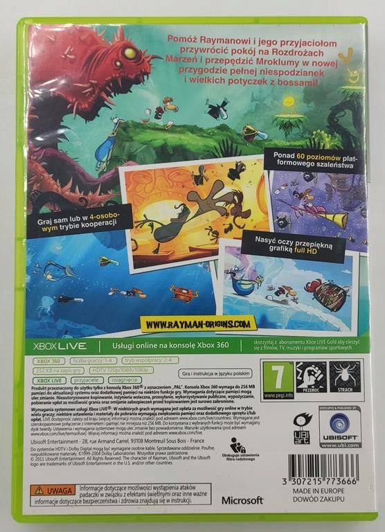 Просматривая «RAYMAN ORIGINS POLSKIE WYDANIE XBOX 360», вы можете быть уверены, что данный товар из каталога «[rubrica_name]» будет доставлен из Польши и проверен на целостность. В цене товара, указанной на сайте, учтена доставка из Польши. Внимание!!! Товары для Евросоюза, согласно законодательству стран Евросоюза, могут отличаться упаковкой или наполнением.