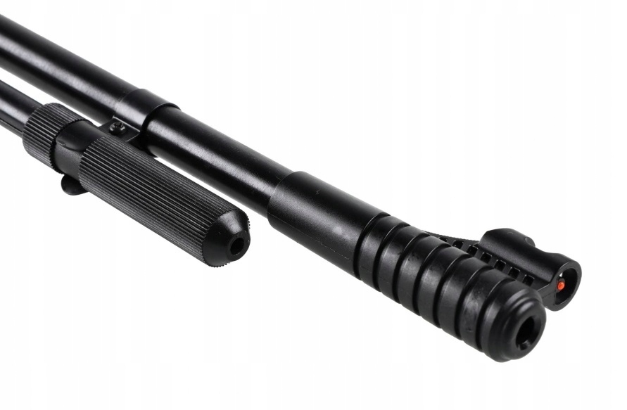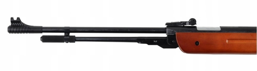 У ветра есть пружинный привод от So -Shareed Dolny Tension . Несомненные преимущества этой системы включают стабильность ствола и увеличение срока службы всей пневматической системы. Мы сжимаем с помощью длинного рычага под бочкой, давая карабине появление охотничьего артера.