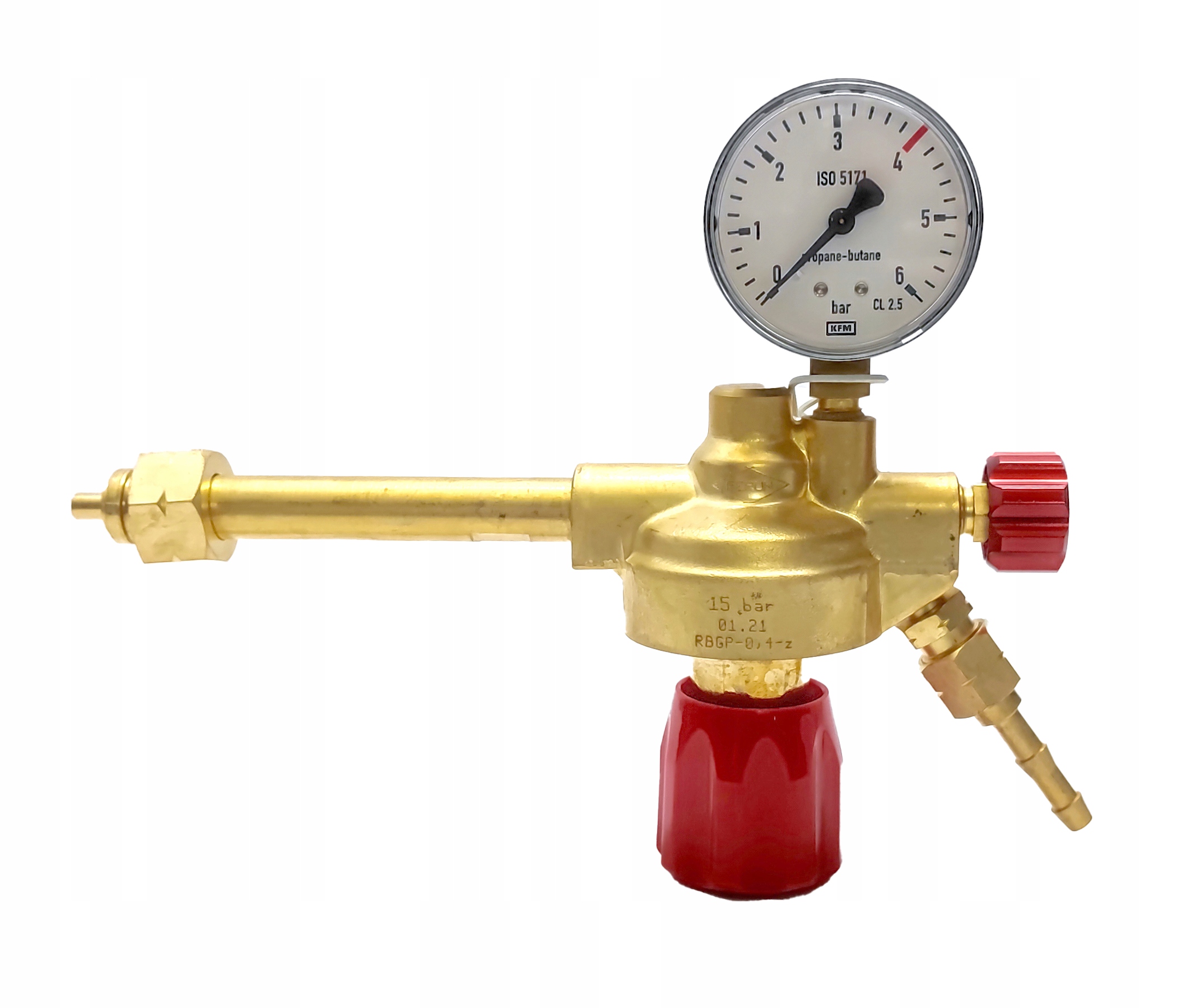 Редуктор баллонный РБГП-0,4-з предназначен для снижения давления пропан-бутана, отбираемого непосредственно из баллона, до необходимого выходного (рабочего) давления в диапазоне 0,2÷4 бар, устанавливаемого пользователем с помощью регулировки. винт.