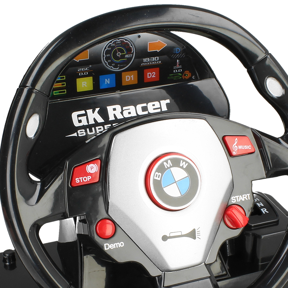 Ребенок чувствует себя настоящим спортивным водителем BMW, готовым вырваться на трассу.