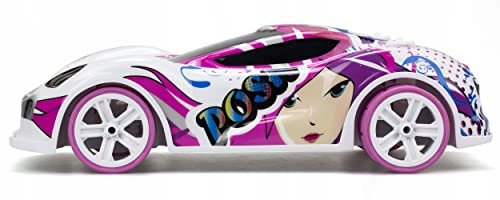 Этот гоночный автомобиль имеет звуковые и световые эффекты. Звуковые эффекты активируются с пульта дистанционного управления, автомобиль оснащен яркими фарами и розовыми светодиодами под шасси. Гоночный автомобиль в девичьих цветах движется со скоростью 8 км/ч и имеет запас хода 25 метров. Его длина более 30 см.