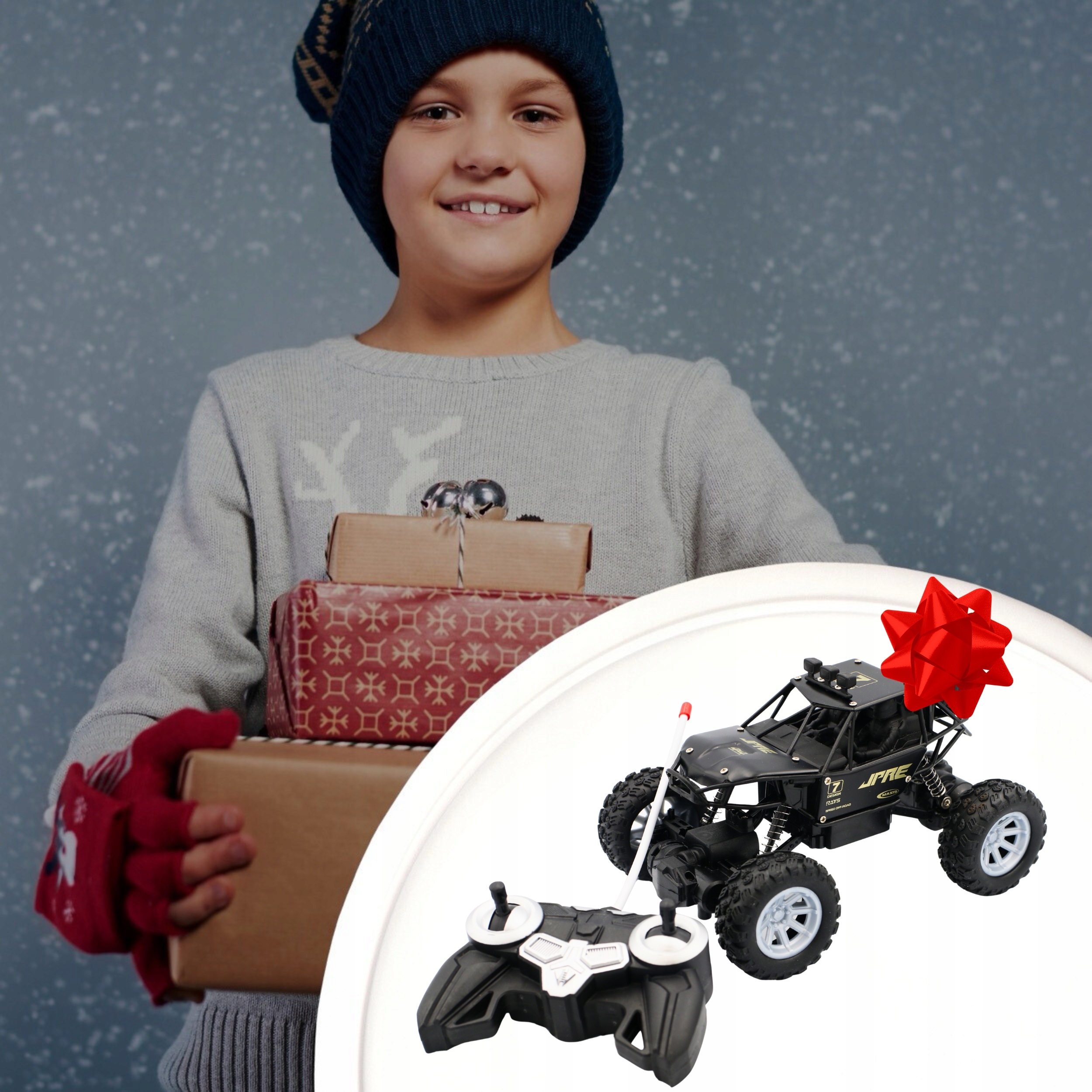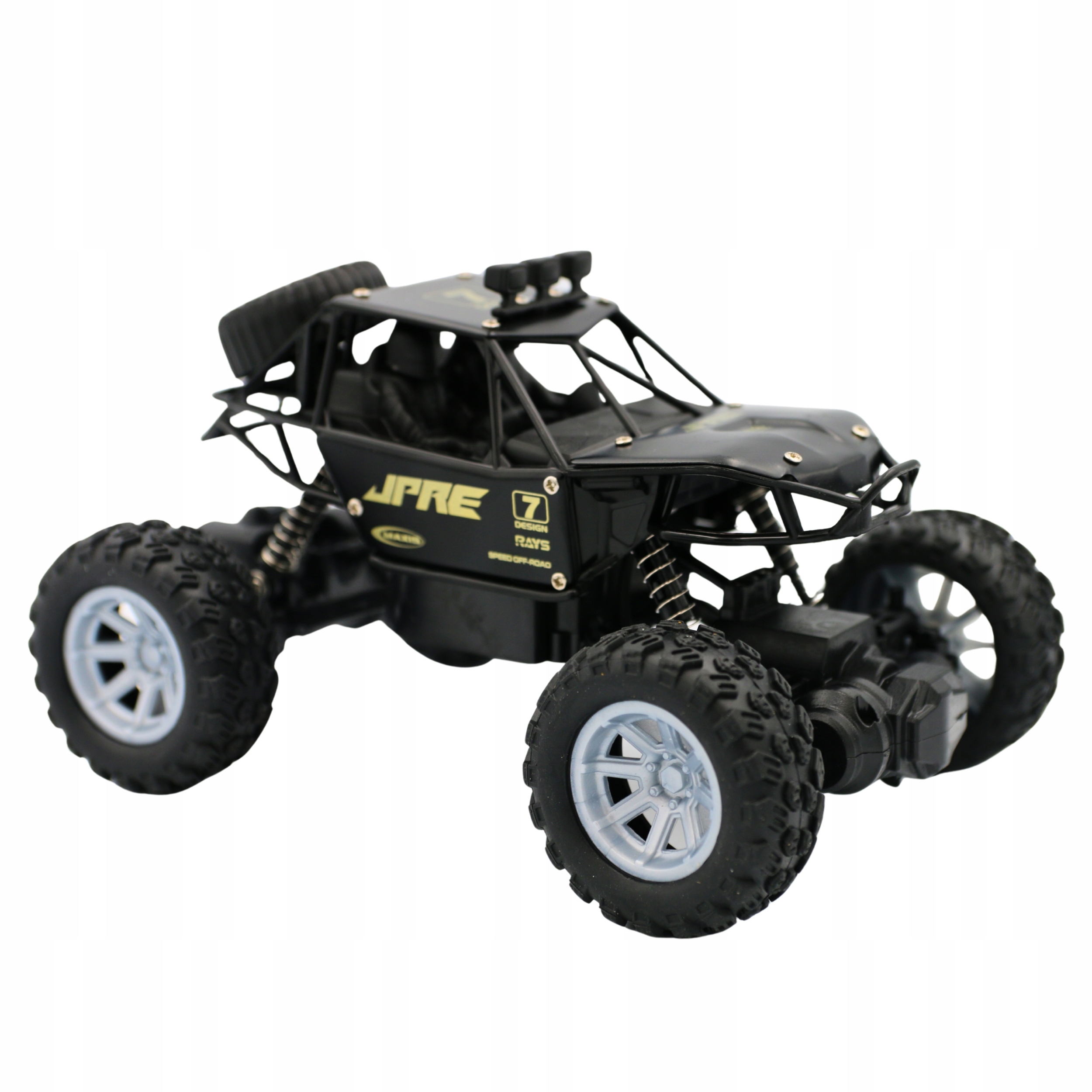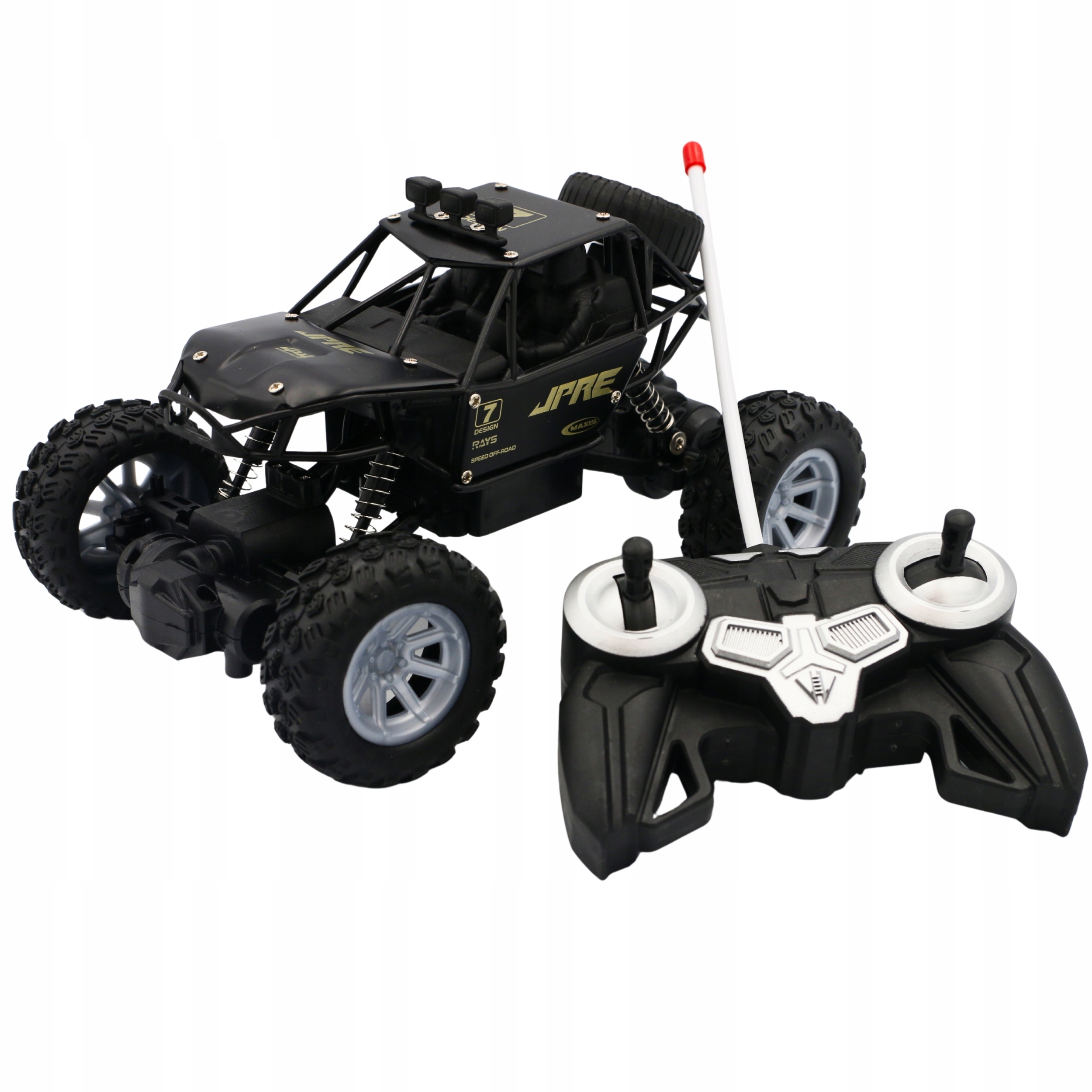 Стилистически сильный внедорожный RC автомобиль - черный кузов, большие колеса, легкая подвеска - игрушка для детей 8+ и взрослых, любящих езду по бездорожью на радиоуправляемых моделях.