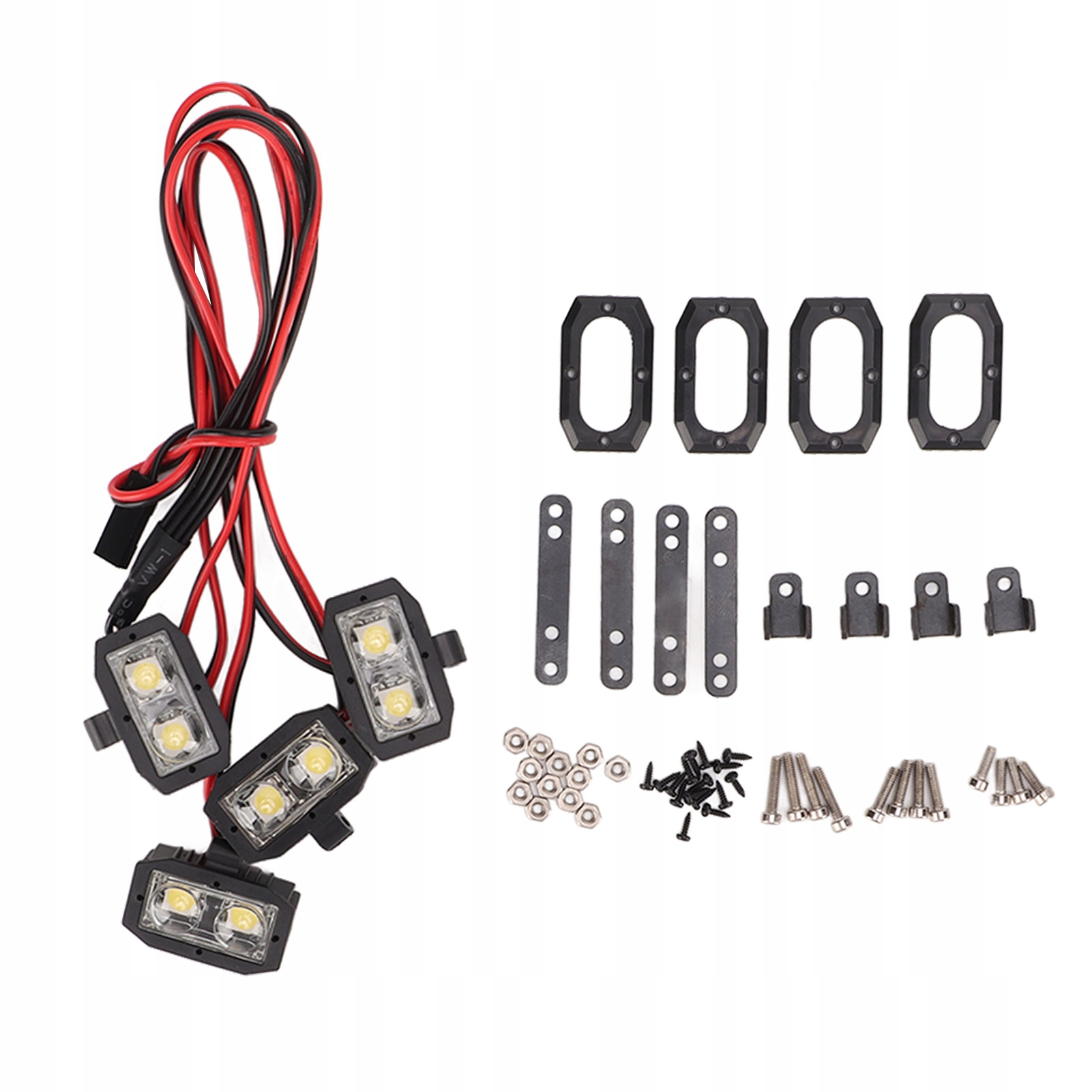 1, 8 светодиодов: цвет света белый, что обеспечивает сверхяркие световые эффекты, свет 8 светодиодов — отличный аксессуар для ночного освещения, позволяющий избежать столкновений в темноте. 2, вспомогательное напряжение: стандартный разъем 2.54JR, может питаться от приемника или BEC, вспомогательное напряжение 5-7,4 В, может работать непосредственно в среде 2S LIPO. 3. Два типа световых кронштейнов: радиоуправляемые фонари оснащены двумя типами световых кронштейнов, опорной плоскостью и трубчатой рамой для крепления круглого кронштейна для опоры, кронштейн можно перемещать и складывать. 4. Изысканное украшение: яркие светодиодные фонари могут улучшить имитацию радиоуправляемых транспортных средств, а также стать красивым украшением вашего автомобиля. 5. Пластик: корпус изготовлен из высококачественного пластика, который является износостойким и прочным, а также имеет длительный срок службы.