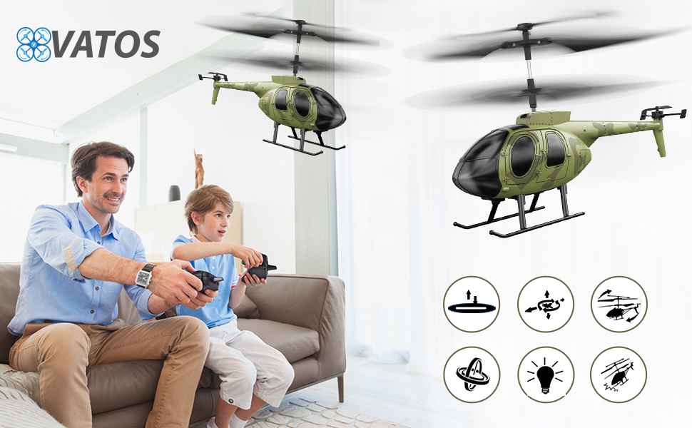 - ✈️Вертолет с дистанционным управлением VATOS, пульт дистанционного управления 2,4 ГГц, 3-канальный.