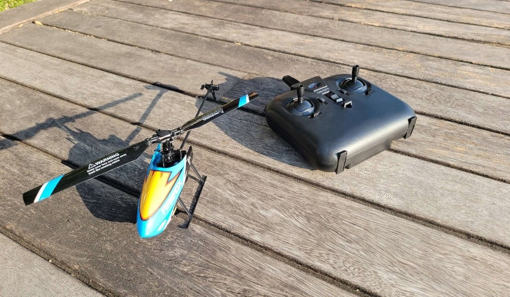 Входящий в комплект передатчик 2,4 ГГц обеспечивает полный контроль над вертолетом. Вы также можете выбрать, хотите ли вы летать в режиме левши или правши, а также имеется переключатель для увеличения или уменьшения скорости полета.