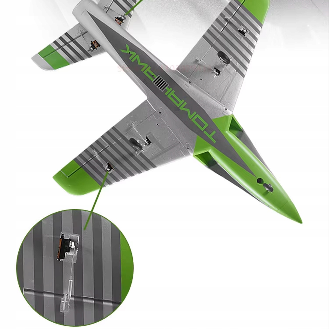 - Сервоприводы: 8x 9g (крылья, рули направления, спереди)