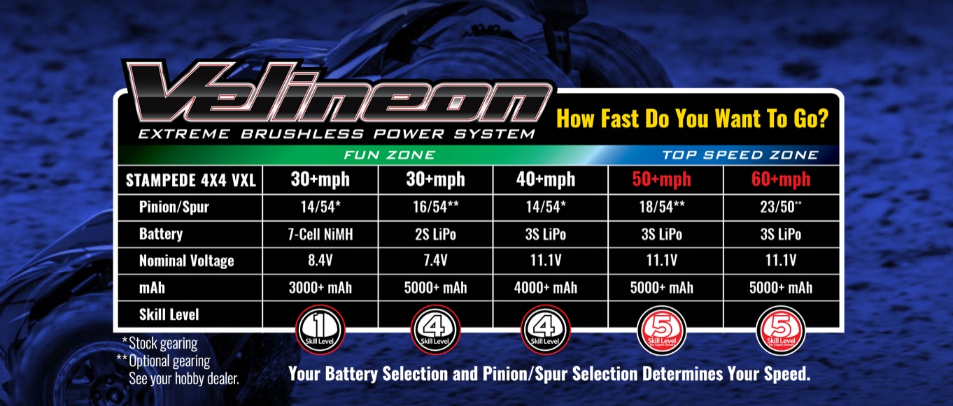 Мощный двигатель Velineon 540XL в Stampede 4X4 VXL на 25 % длиннее стандартного бесщеточного двигателя Velineon 3500 кВ, предлагая практически неограниченные возможности. скорость в вашем распоряжении. Водонепроницаемый регулятор VXL-3s поддерживает аккумуляторы LiPo до 11,1 В. ESC имеет вентиляторное охлаждение и оснащен инновационными функциями, что делает VXL-3 такими же мощными, как и простыми в использовании.
