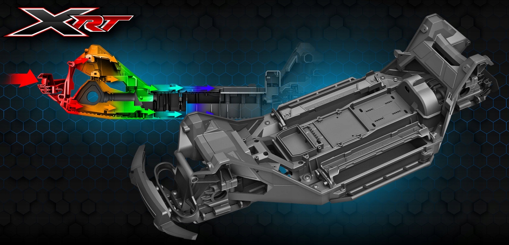 Инженеры Traxxas потратили бесчисленные часы на проектирование каждого дюйма XRT. Треугольная конструкция, вдохновленная гонками, передает и рассеивает энергию удара, сводя к минимуму возможность изгиба или поломки выноса.