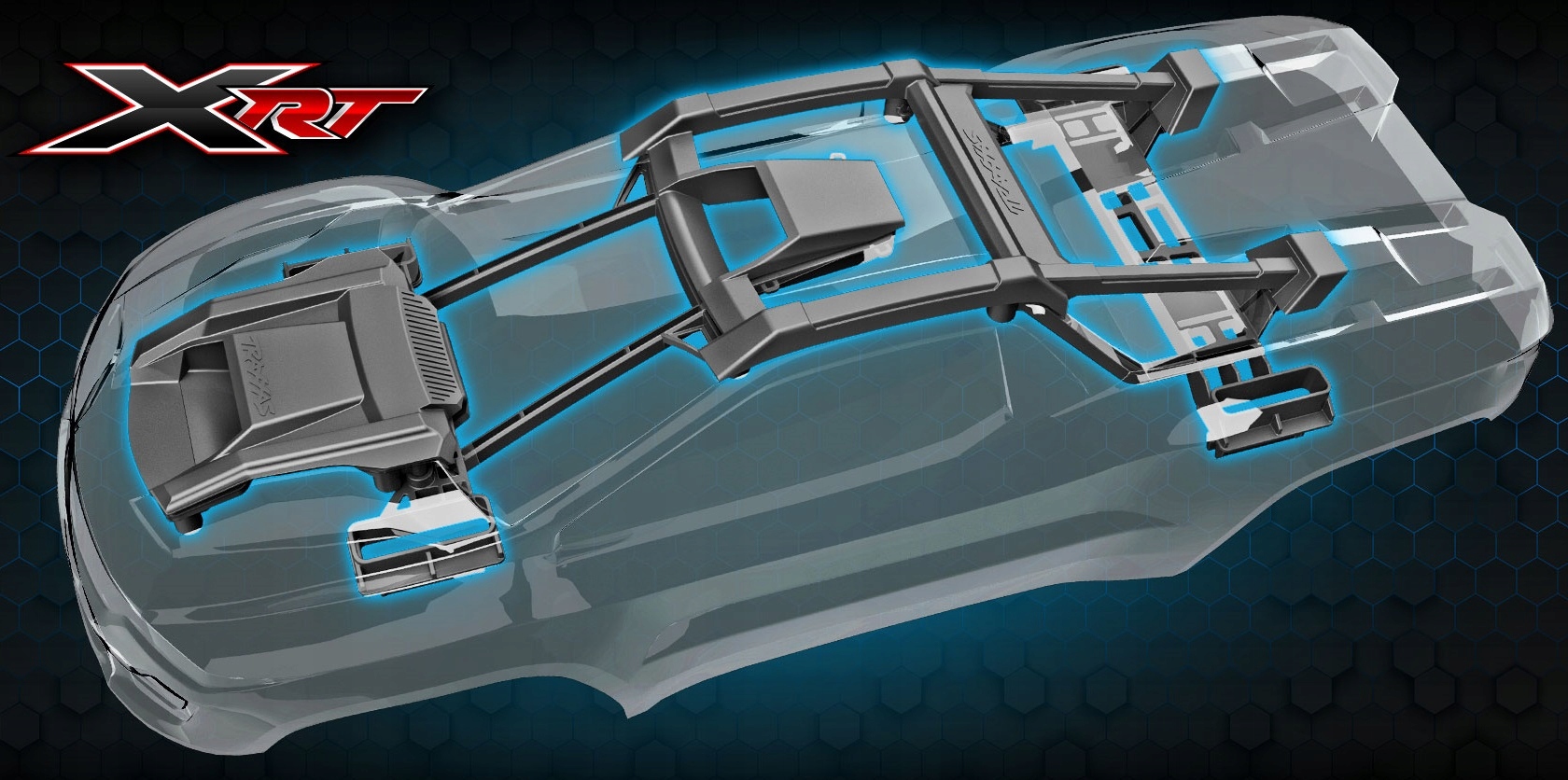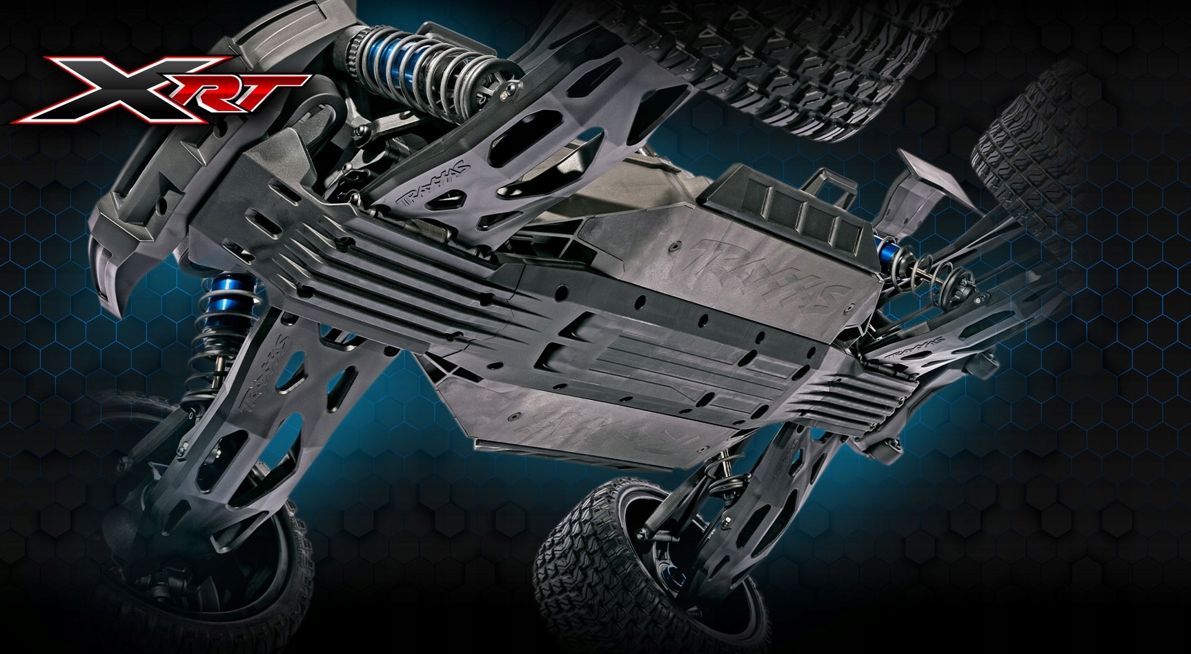 Защитные пластины XRT точно интегрированы с пластиной шасси, создавая гладкую поверхность под автомобилем, которая равномерно поглощает удары о землю, а также устраняет проблему зацепления шасси за неровности дороги.