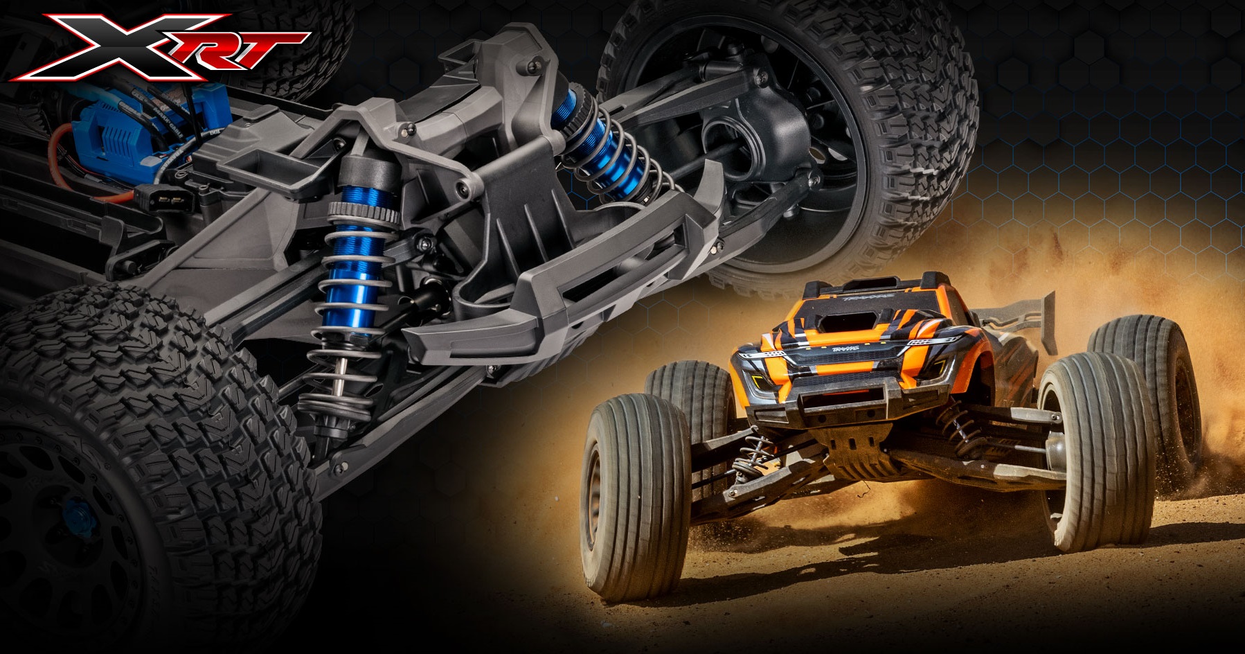 Низкий центр тяжести, алюминиевые амортизаторы и сверхширокая колея обеспечивают уверенную управляемость и предсказуемое поведение на поворотах. Вне трассы XRT одинаково хорош и на бездорожье, не придется сбрасывать газ при движении на полной скорости и в дрифте.